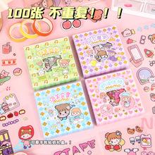 100 piezas de set de stickers para cuaderno transparente de dibujos animados a prueba de agua sin costuras stickers para cuaderno corazón femenino diy pegatinas decorativas de papelería
