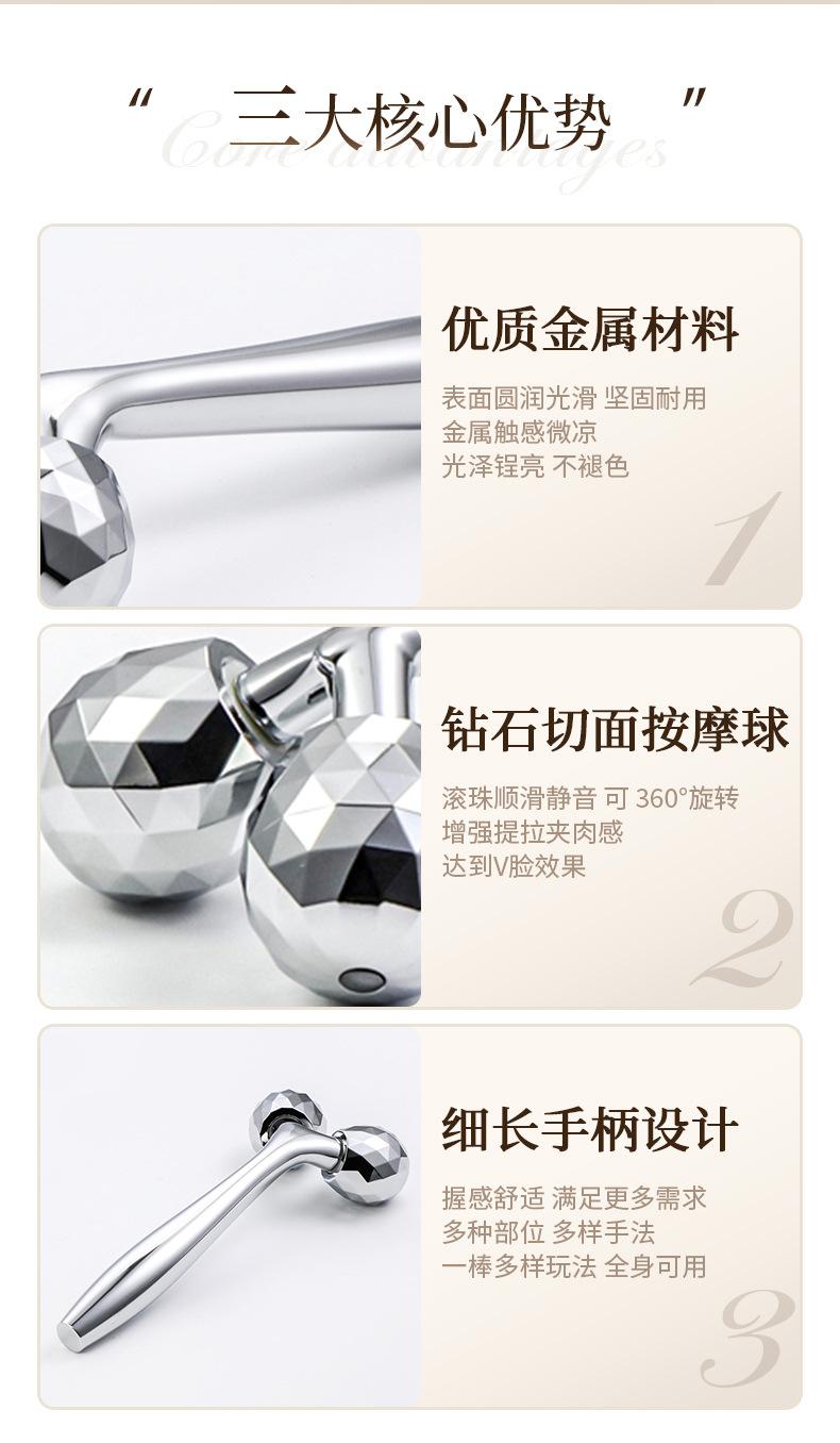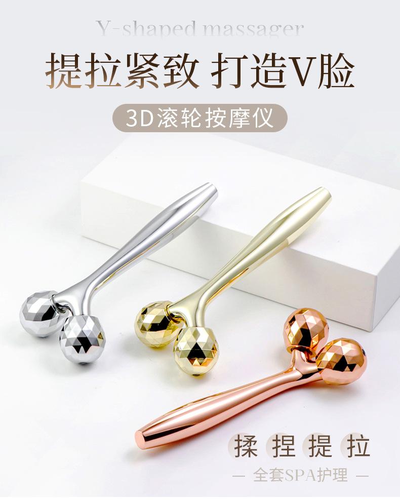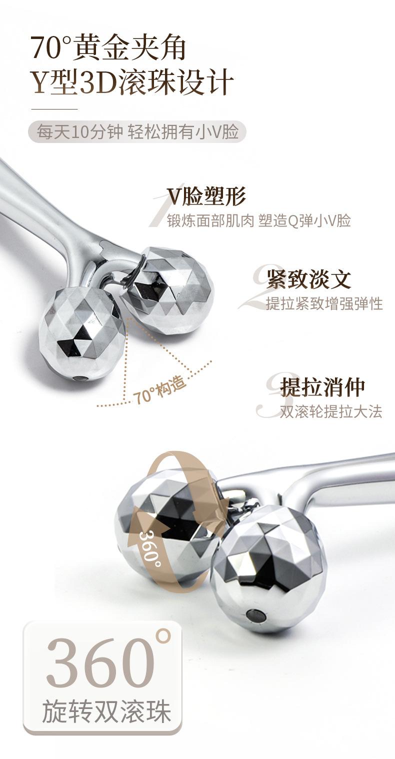 Barra de Masaje Facial 3D de Metal Plateada en Forma de Y Rodillo de Mano Instrumento de Masaje Herramienta de Belleza Artefacto Lifting Facial en V