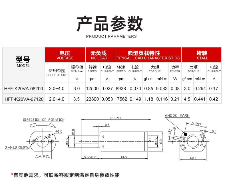 Motor K20 alta velocidad bajo ruido equipo de monitoreo motor de cámara electrónica instrumento de belleza micro motor de precisión