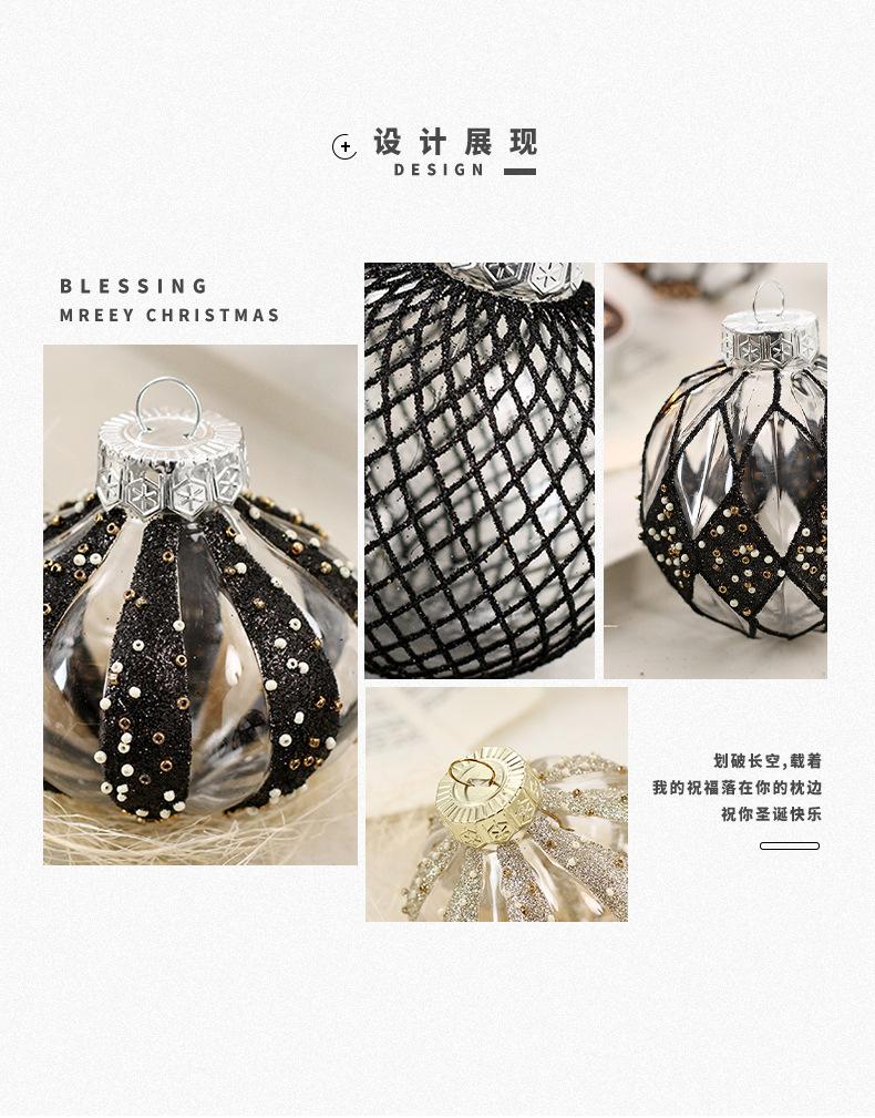 Boutique de decoraciones navideñas PET transparente pintado traje de bola navideña adornos accesorios para árbol de Navidad colgante