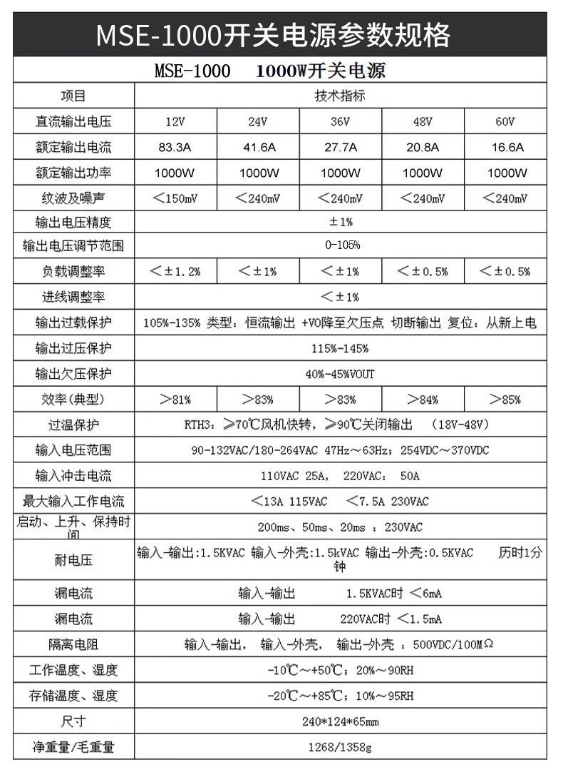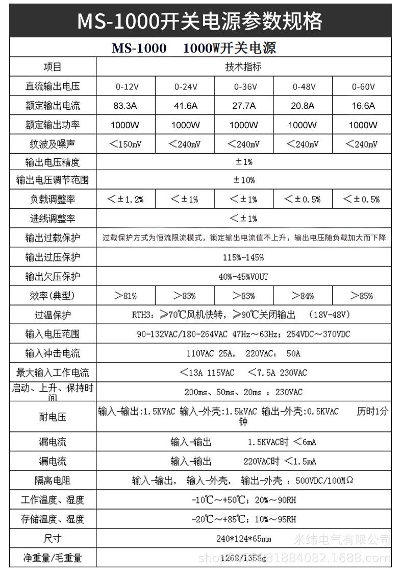 Fuente de alimentación conmutada con transformador MS-1000-12V220 a 24V36V48V0-60 CC 50a40A 1000W