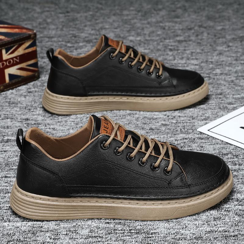 Compra Zapatos casuales de otoño 2023 para hombre, zapatos de tablero negros transpirables a la moda que combinan con todo, zapatos de cuero, zapatos deportivos casuales de moda. al por mayor en Joom.pro