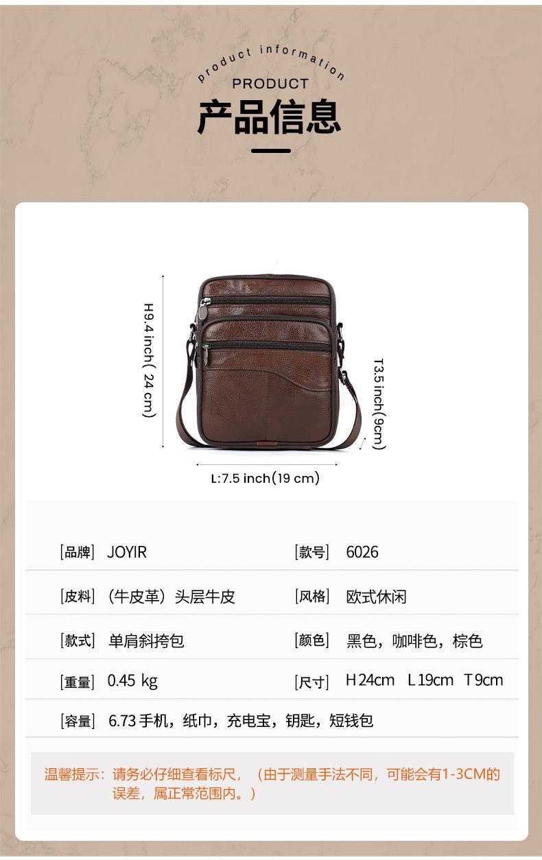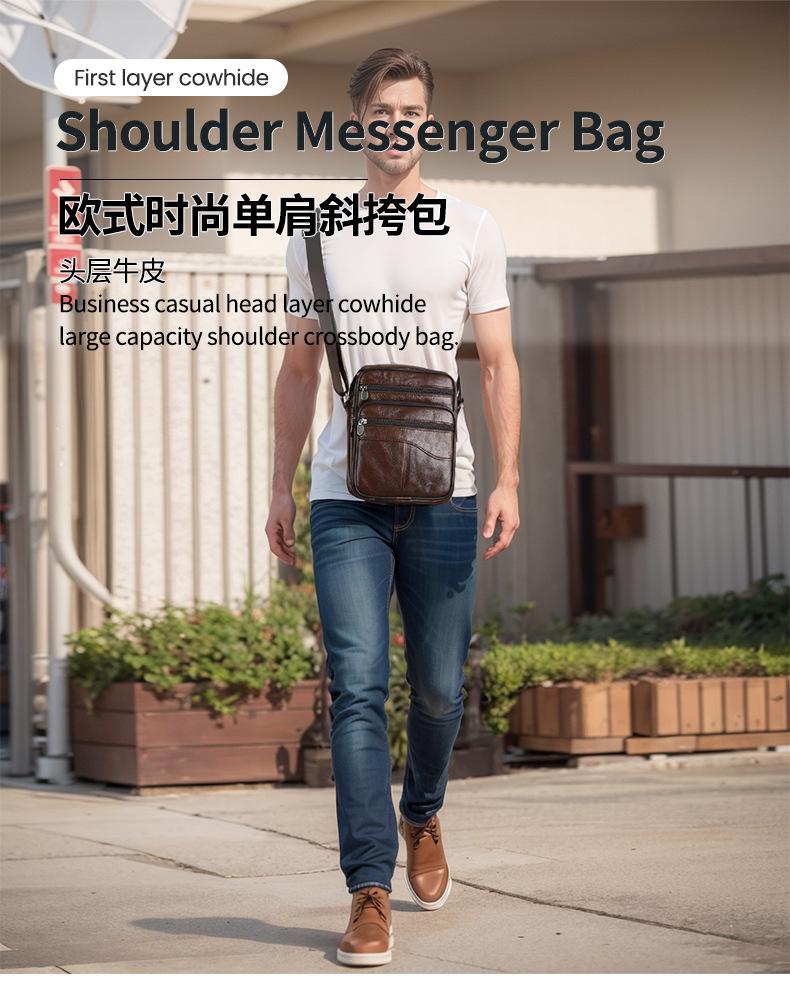 Bolso de hombro de piel de vaca auténtica transfronteriza para hombre, bolso vertical para hombre, bolso cruzado informal de negocios de cuero genuino coreano para hombre.