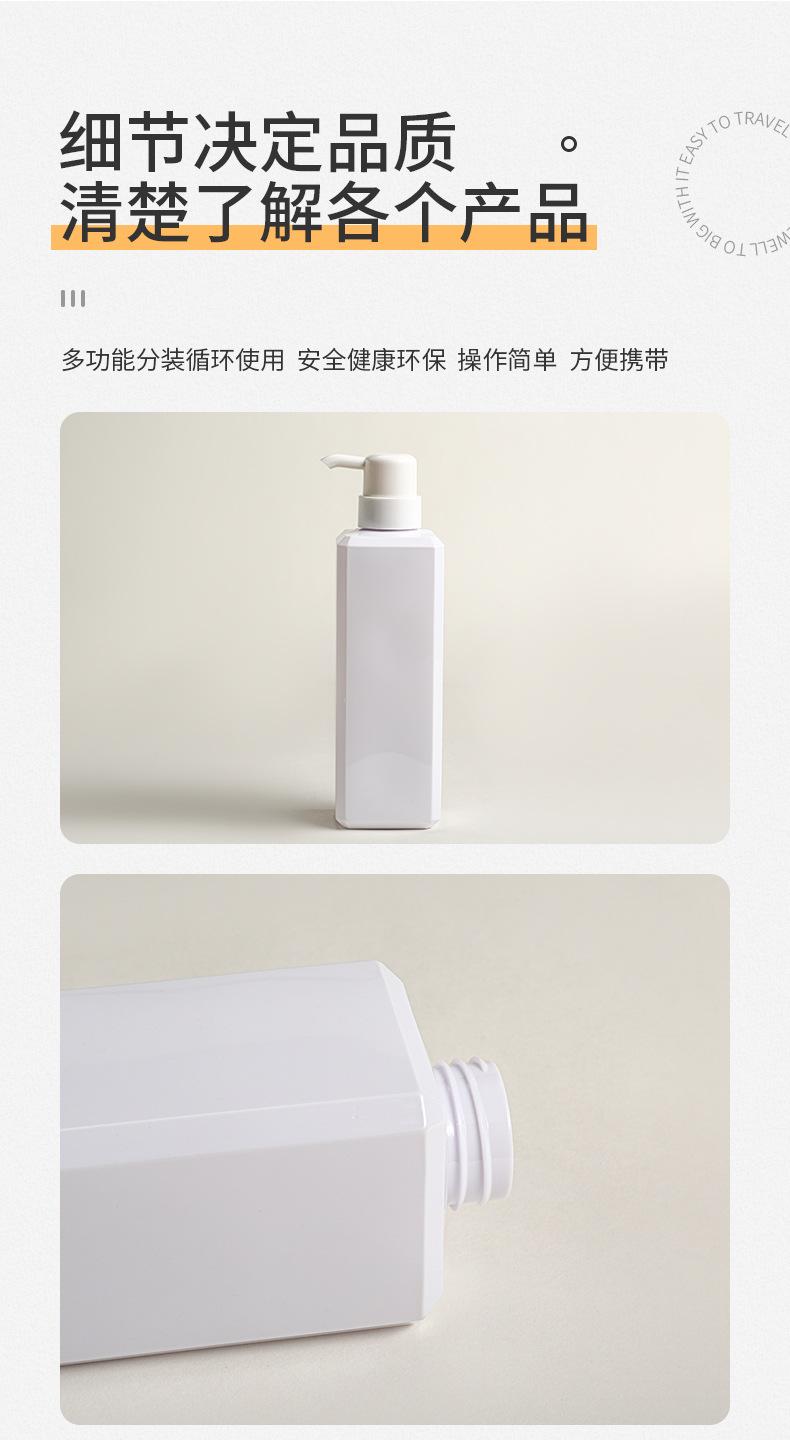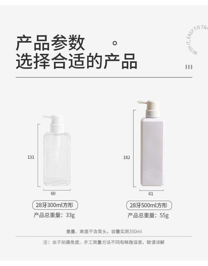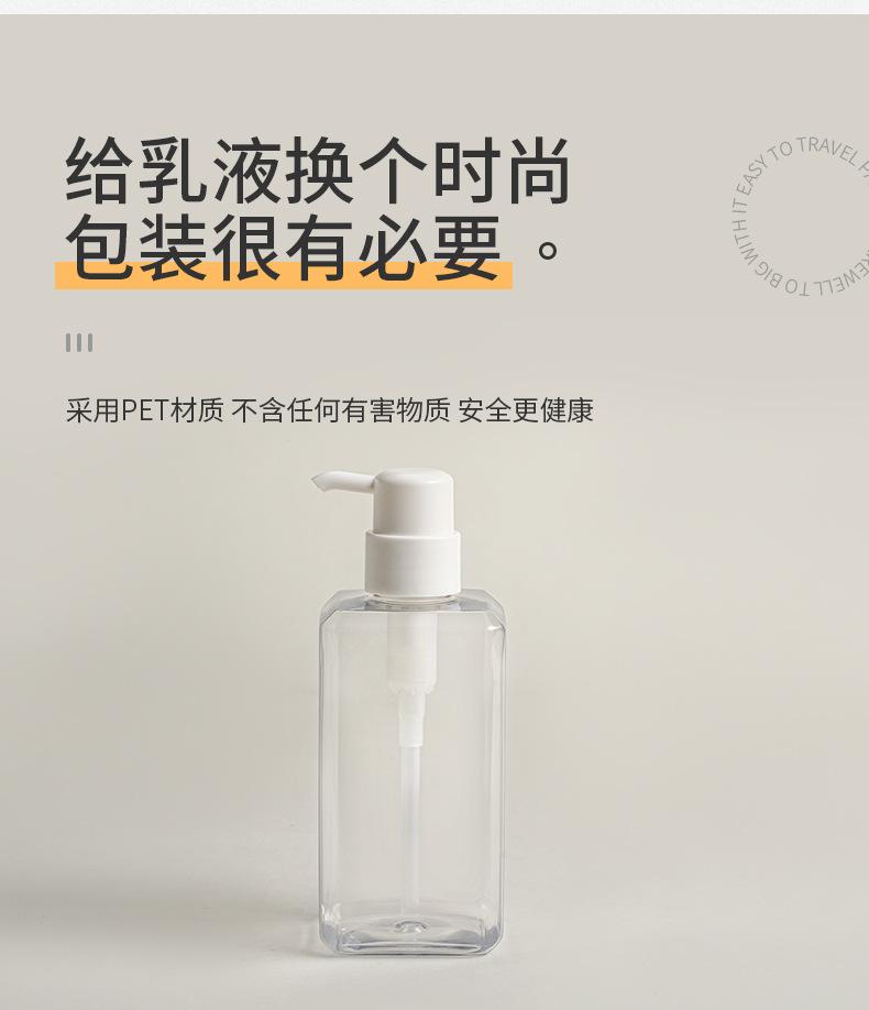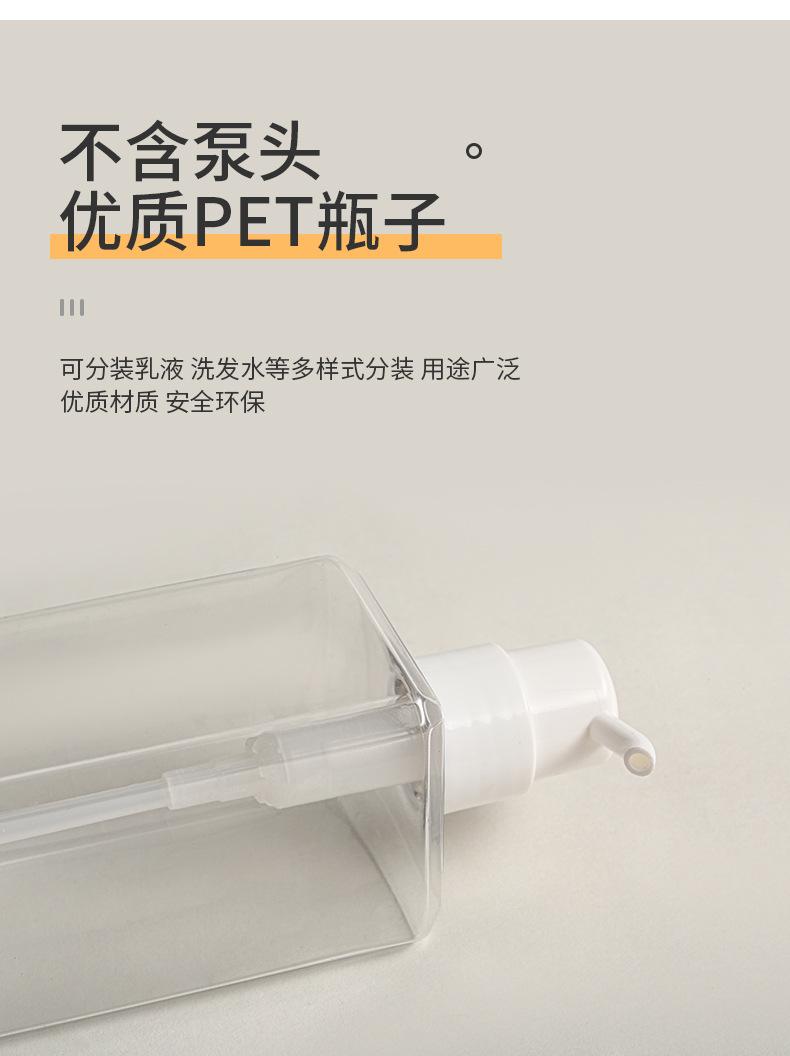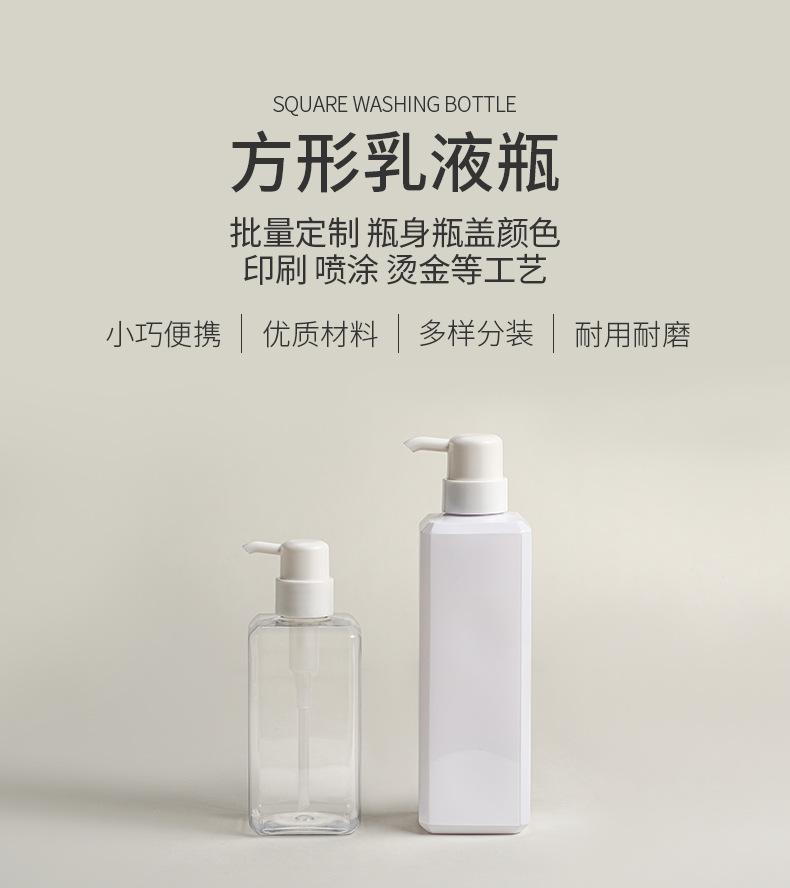 Botella de PET personalizada de 300 ml y 500 ml, botella cuadrada, botella para lavado, botella para desinfectante de manos, champú, gel de ducha, subembotellada