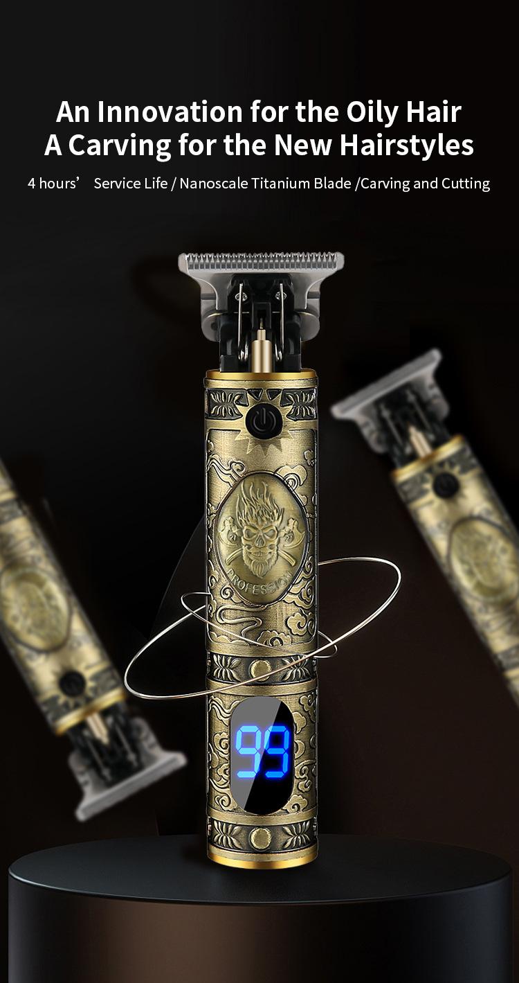 Cortadora de pelo doméstica con pantalla digital LCD y explosiones transfronterizas, cortadora eléctrica retro con cabezal de aceite T9, cortadora de barba pequeña eléctrica