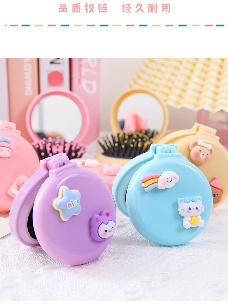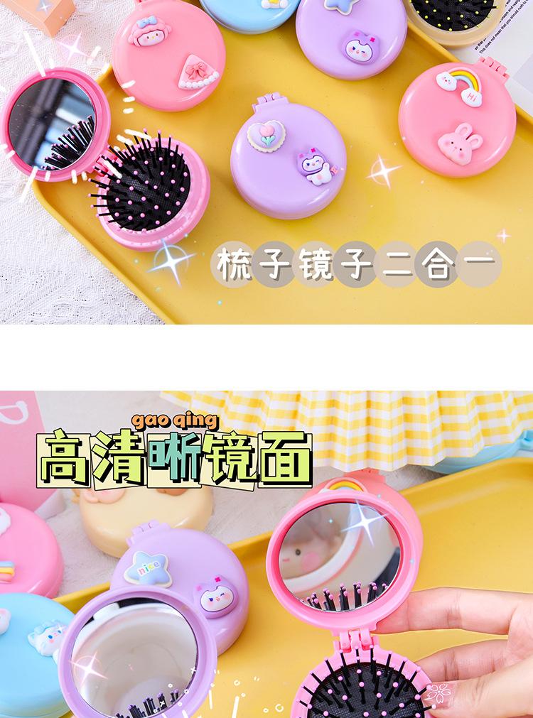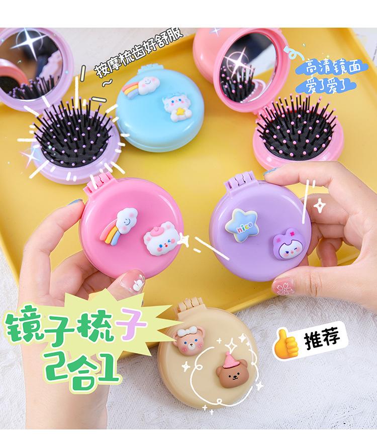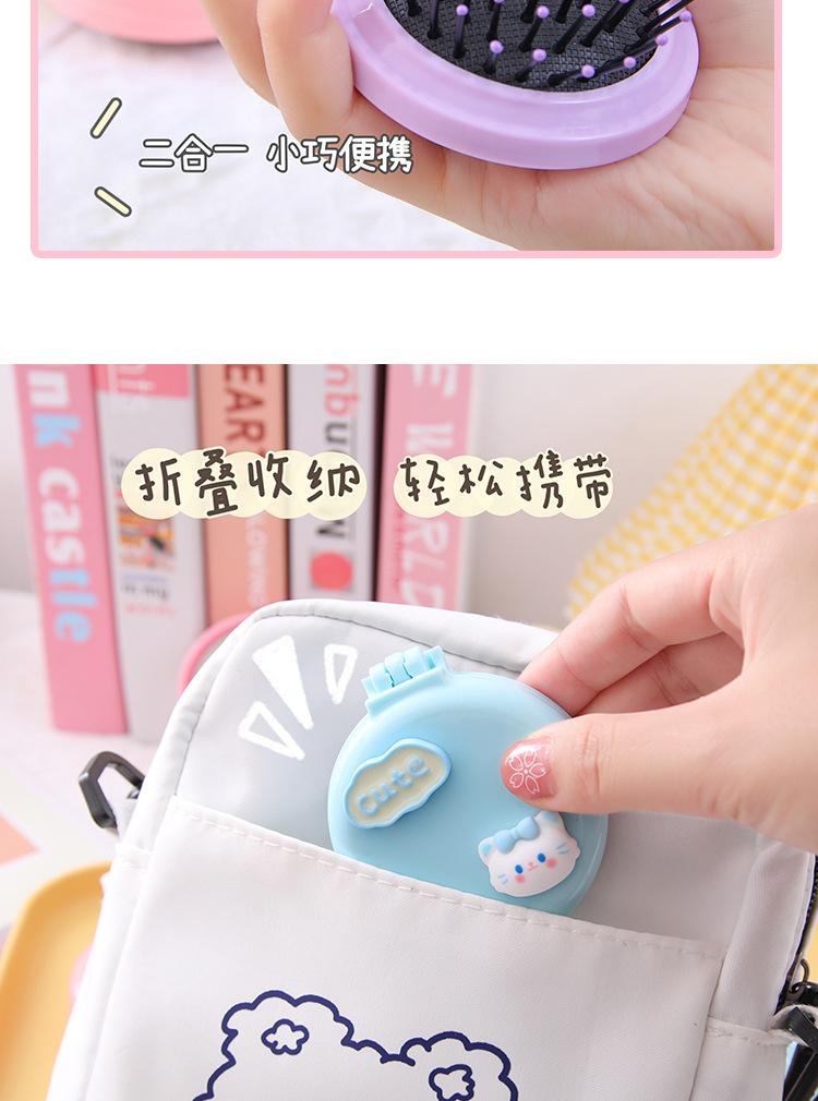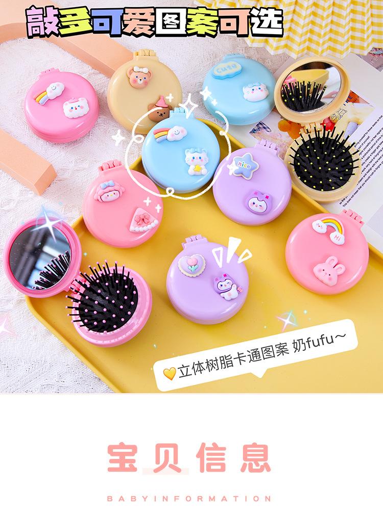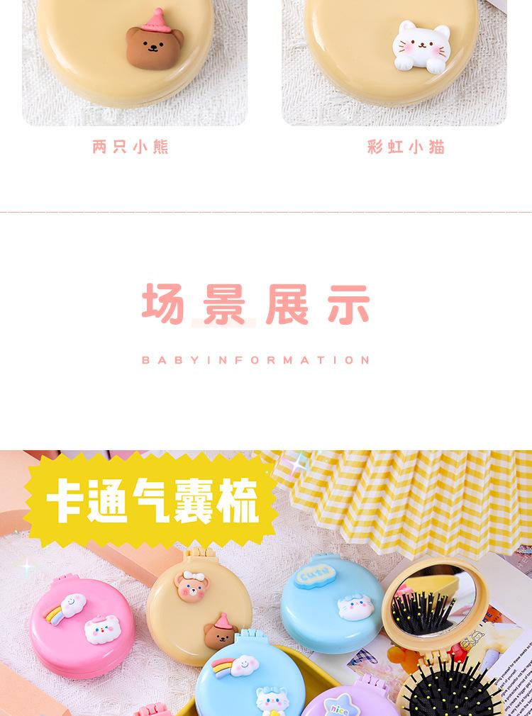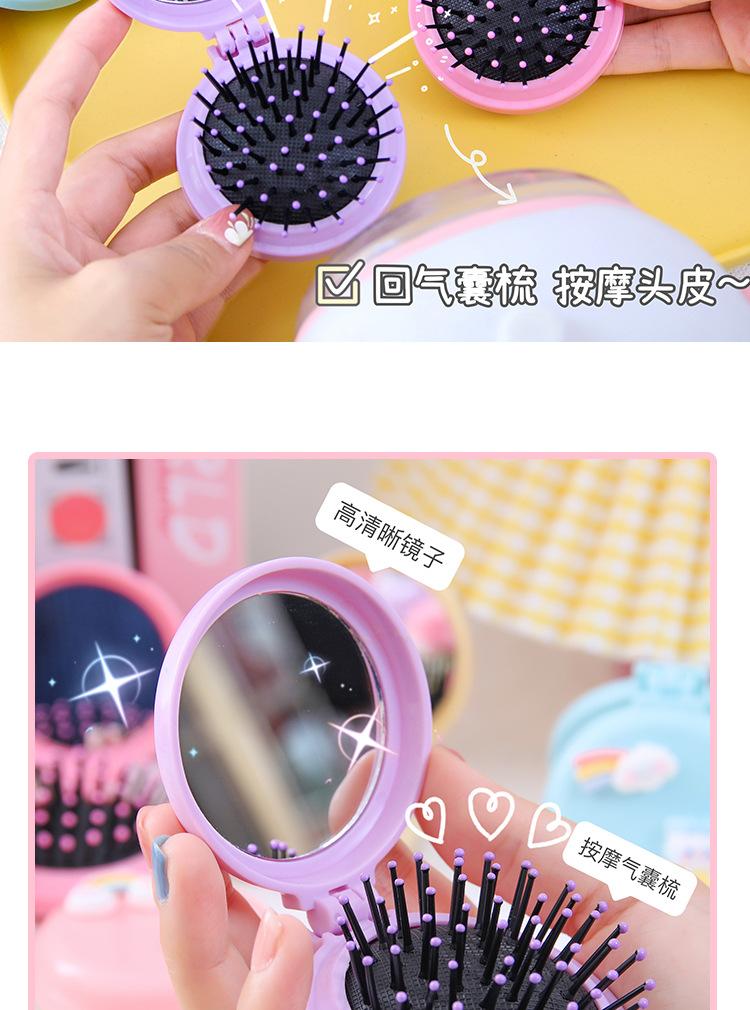 Lindo Mini Peine Plegable Pequeño Peine para el Cabello con Espejo Peine de Bolsa de Aire de Dibujos Animados Portátil Peine de Cojín de Aire Peine de Masaje