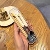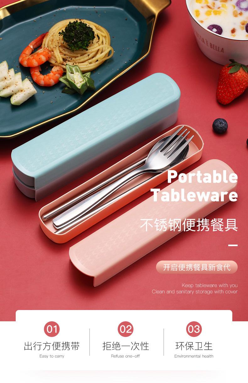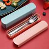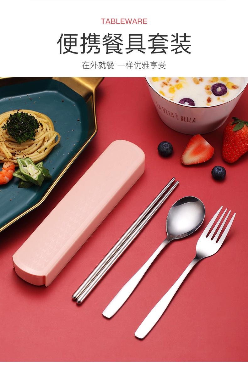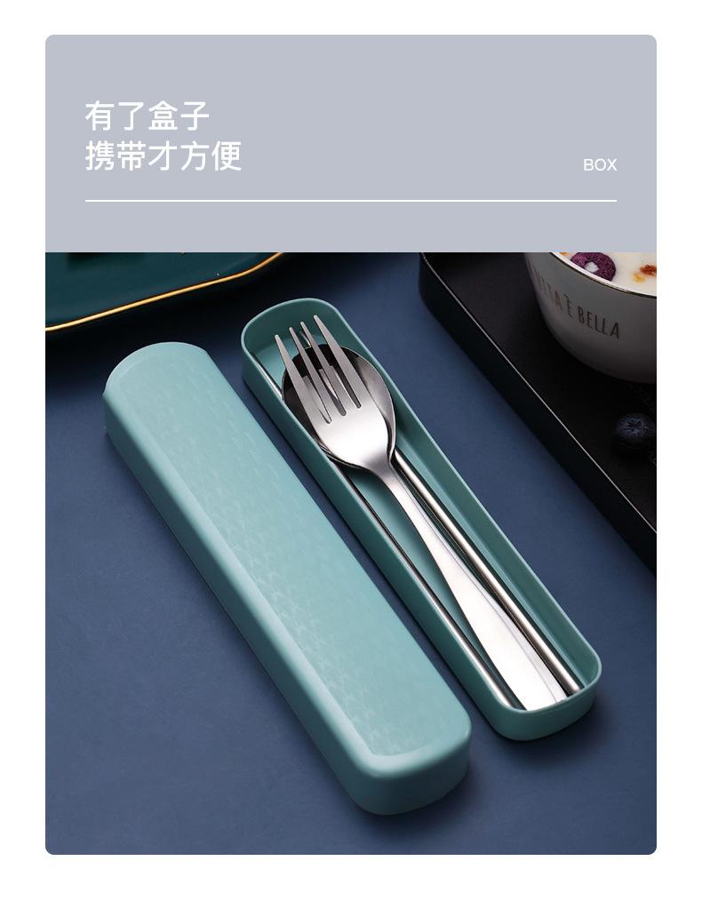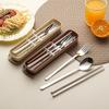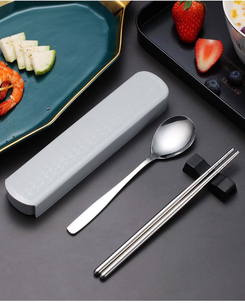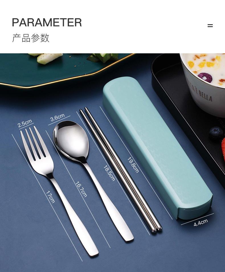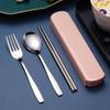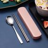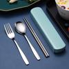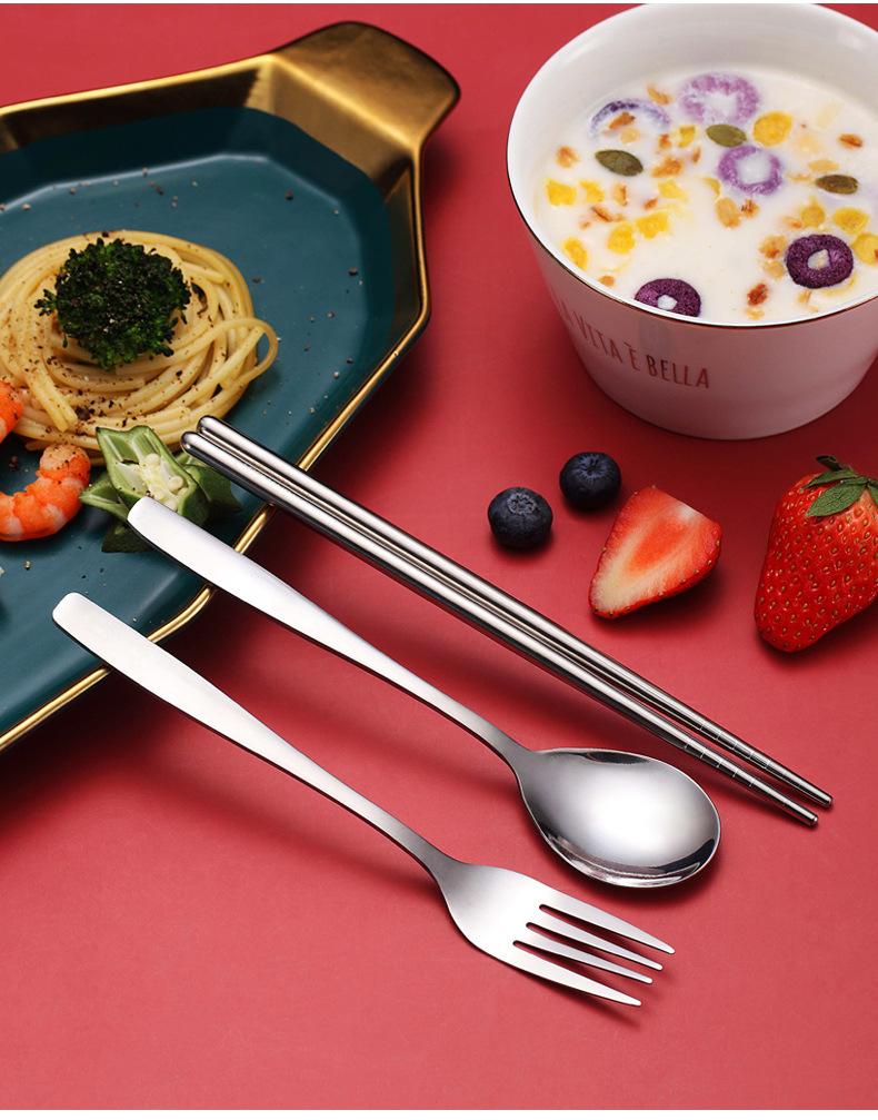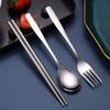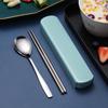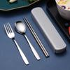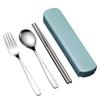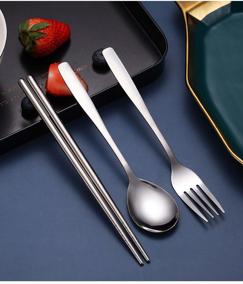 Acero Inoxidable Portátil Lindo Set de Palillos Cuchara Tenedor Oficina Estudiante Vajilla Moderna Set de Tres Piezas para una Persona