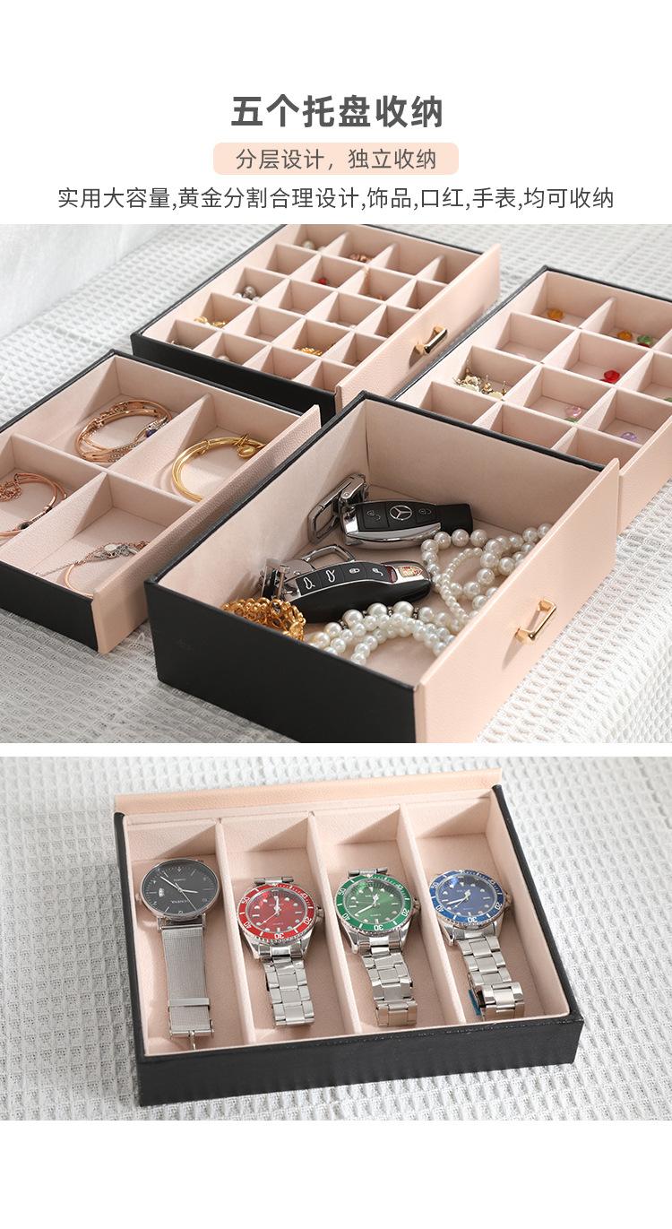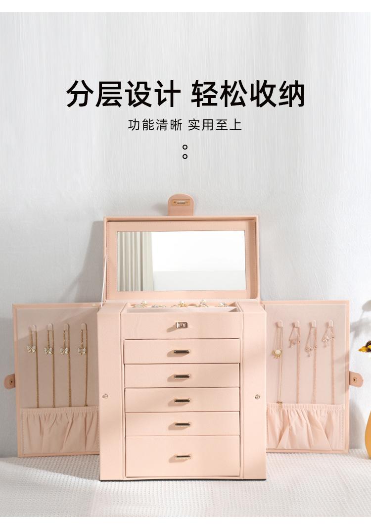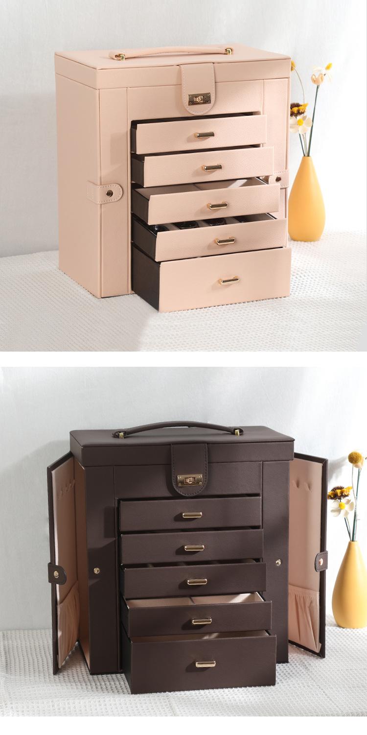 Compra Caja de almacenamiento de joyas de cuero PU, caja de joyería multicapa de gran capacidad, caja de almacenamiento de joyas tipo cajón para anillos, collares y fábrica al por mayor en Joom.pro