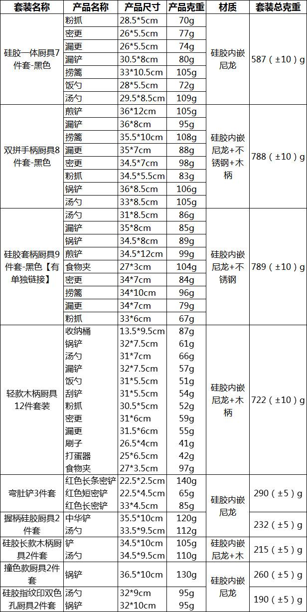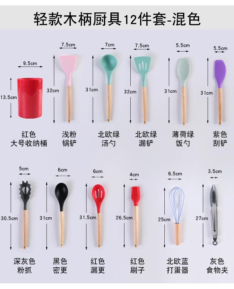 Juego de utensilios de cocina de 9 piezas con mango de silicona [enlace separado]: https://detail.1688.com/offer/731447880811.html?spm=a26286.8251493.description.2.398525b28GpIet