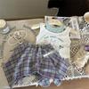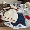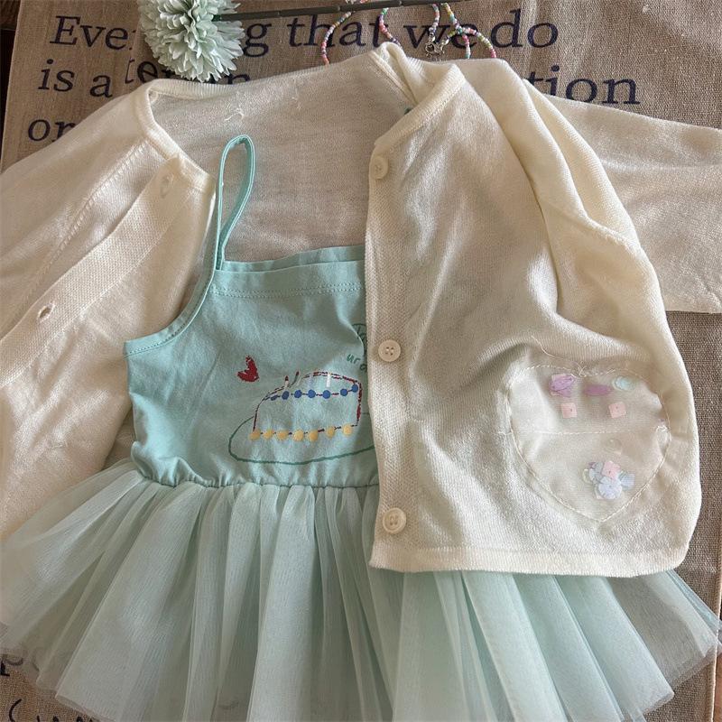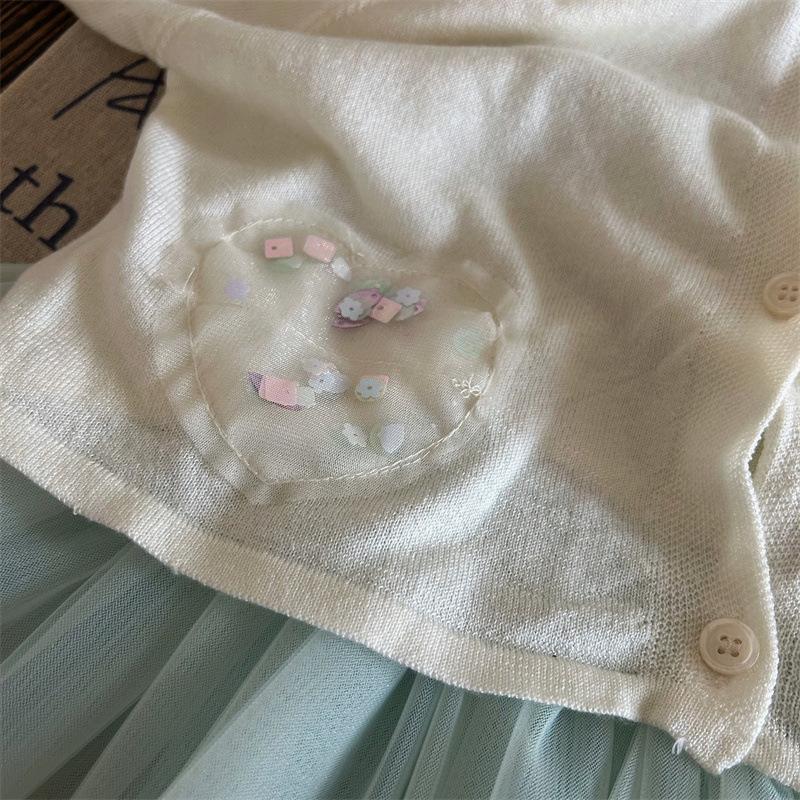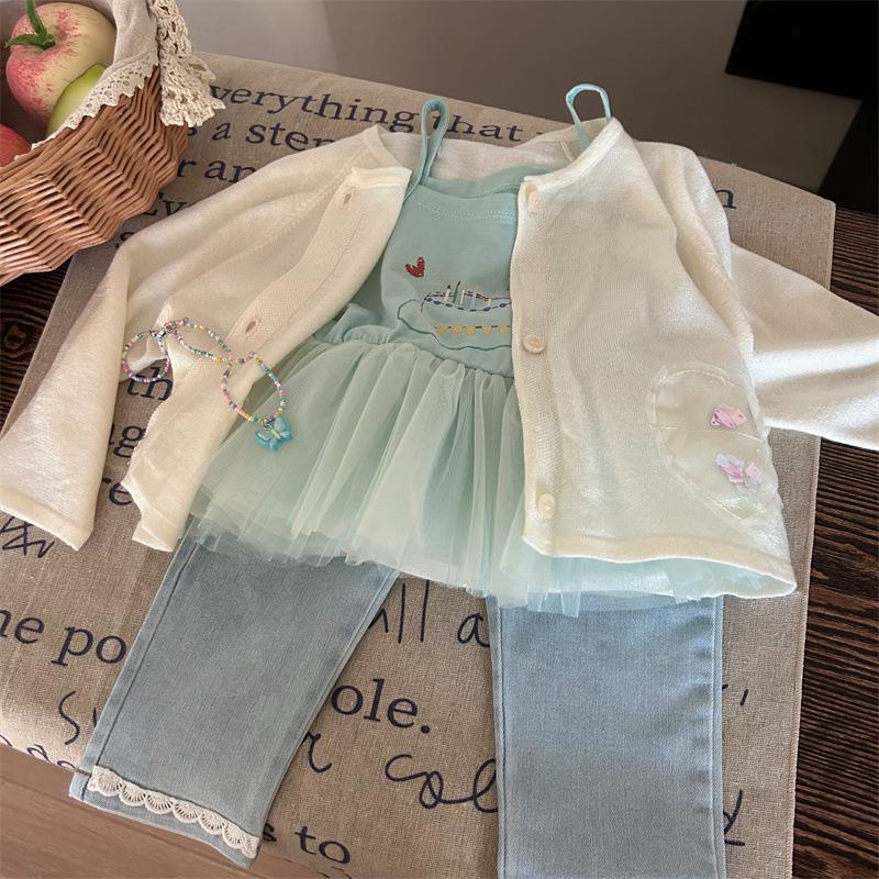 Gran Venta No Reembolsable y No Intercambiable [Pedido por Racionalidad] Top Halter de Malla Empalmada para Niñas + Cárdigan de Punto + Jeans