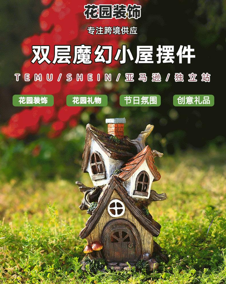 Proveedor Transfronterizo Adornos de Cabaña de Cuento de Hadas de Doble Capa Decoración de Jardín Exterior Regalos de Inauguración de Casa Regalos Artesanías de Resina