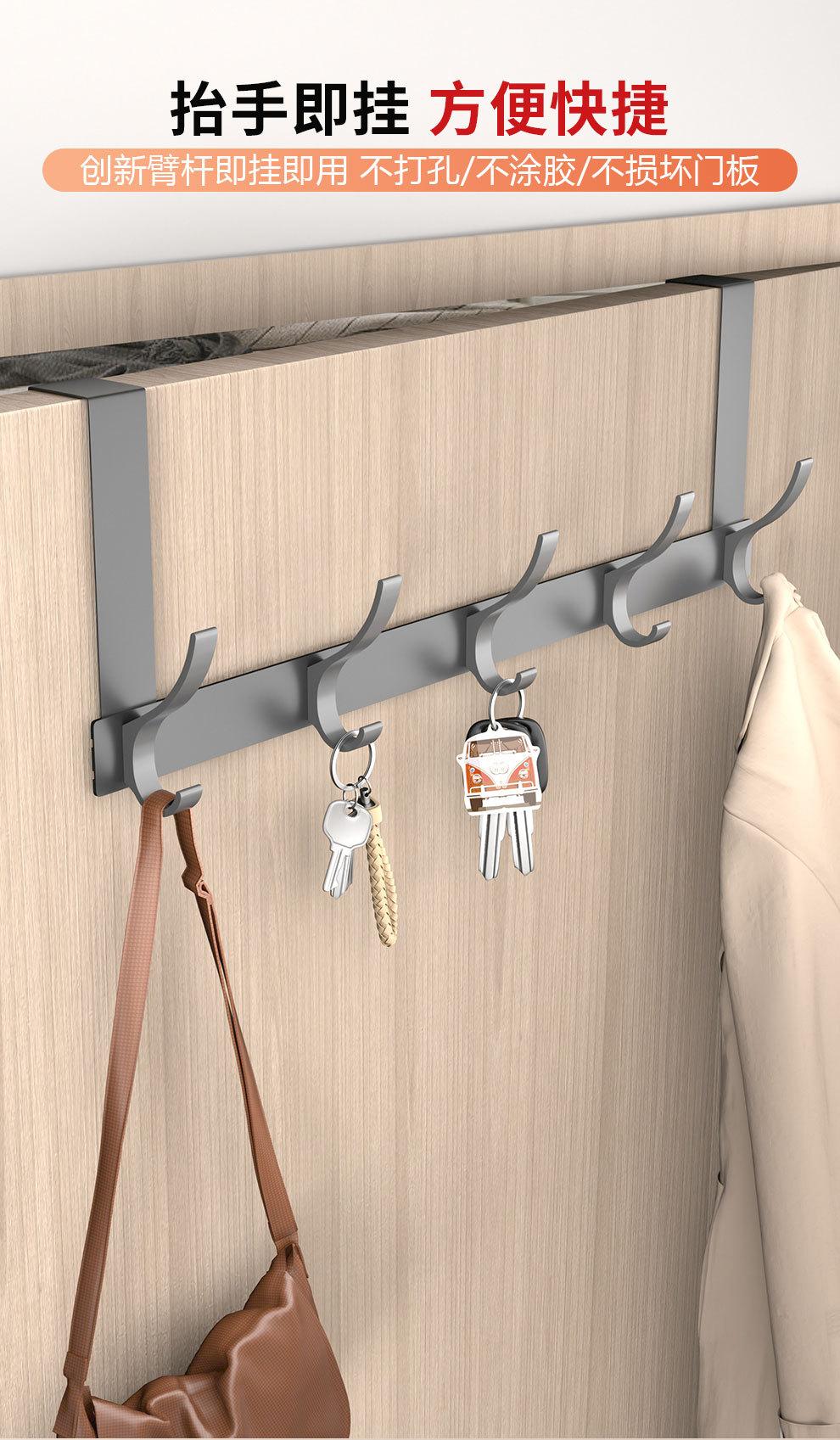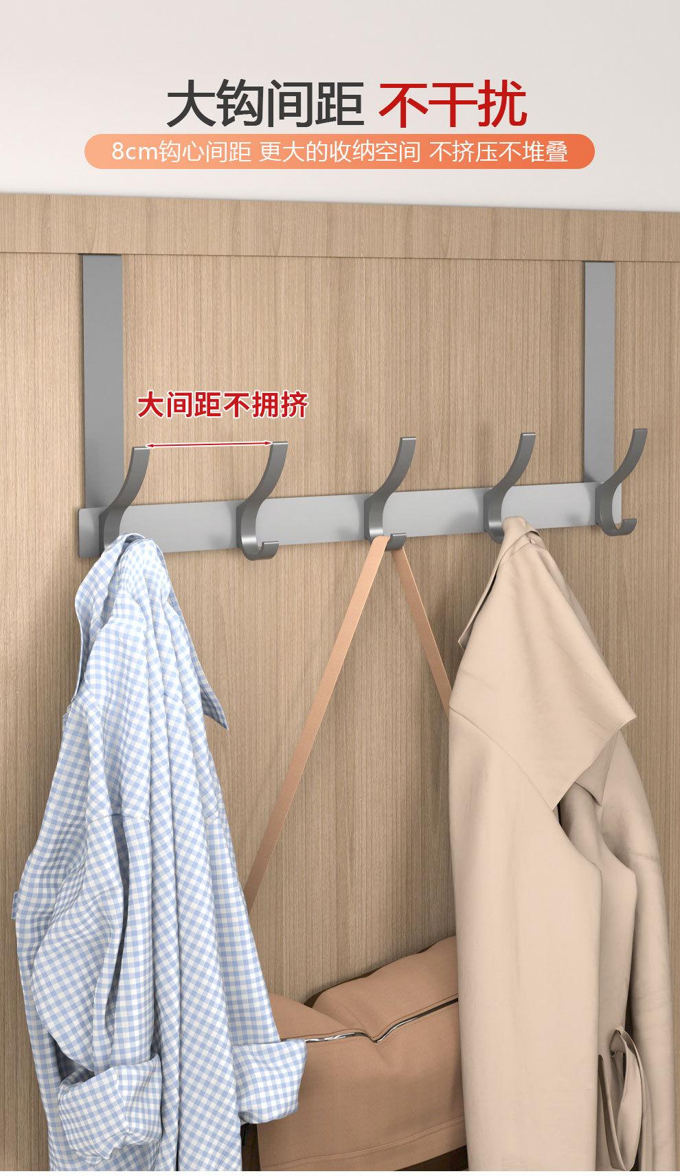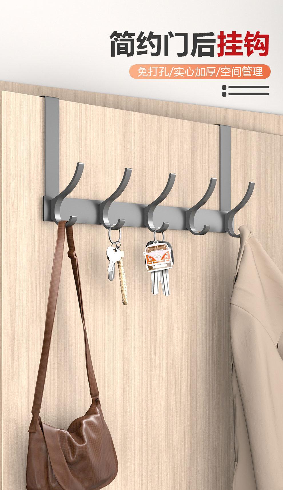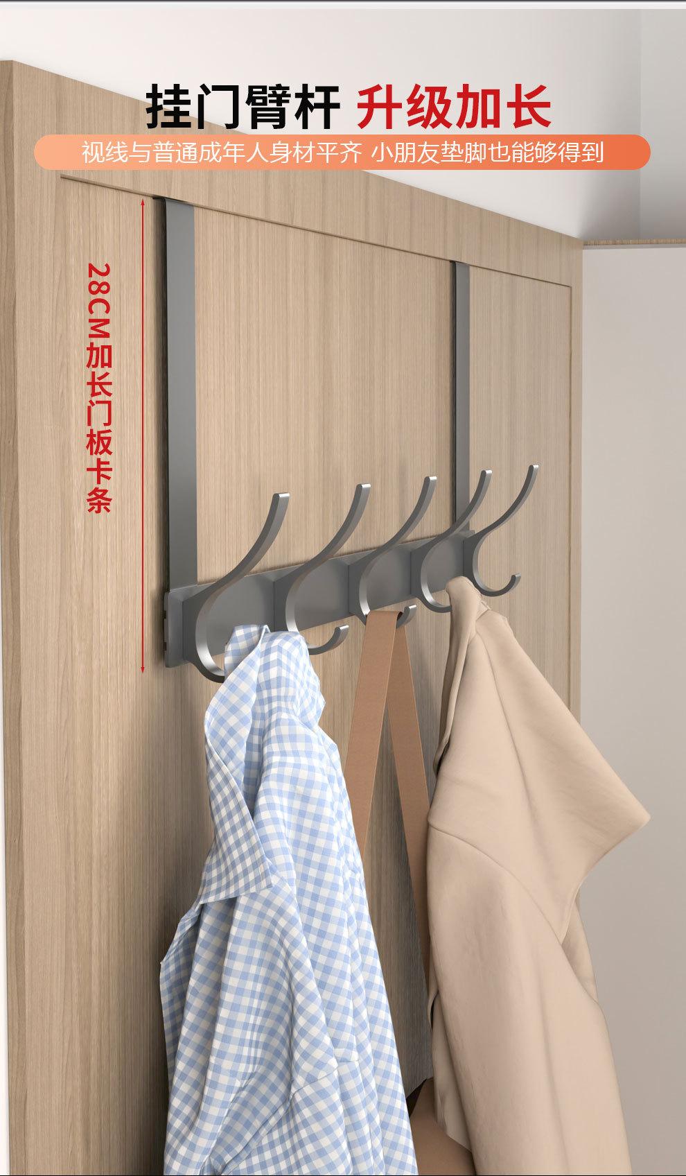 Gancho Sobre la Puerta al Por Mayor Aluminio Espacial Sin Perforaciones Gancho de Baño Almacenamiento de Dormitorio Colgador de Ropa Gancho de Pared para Ropa
