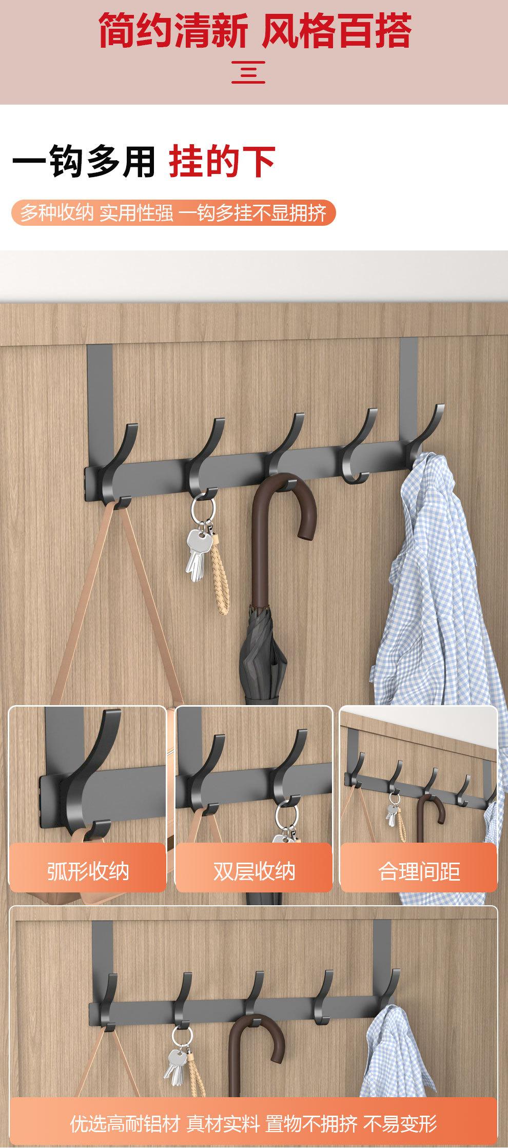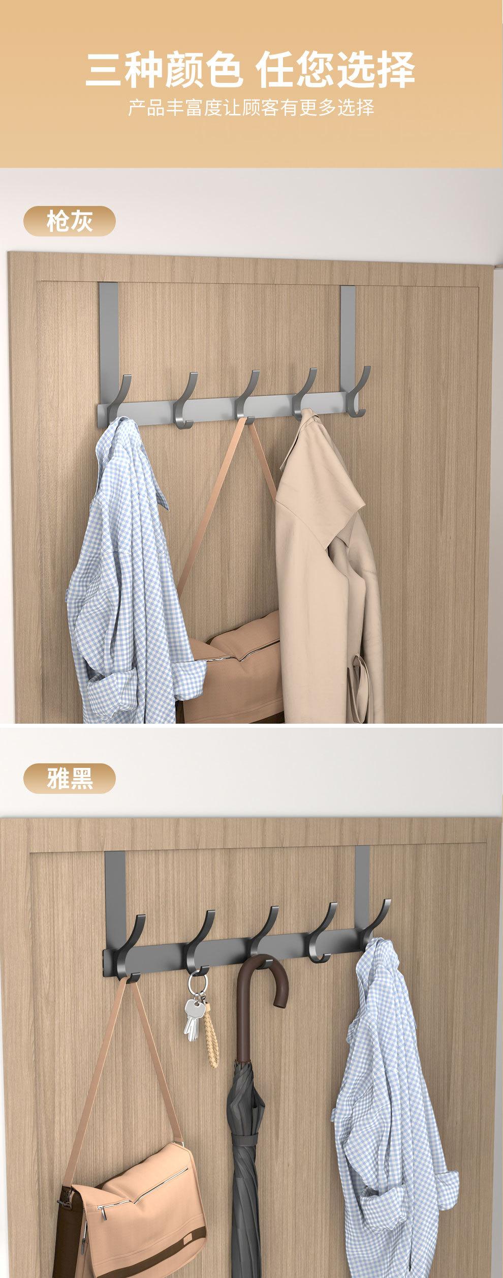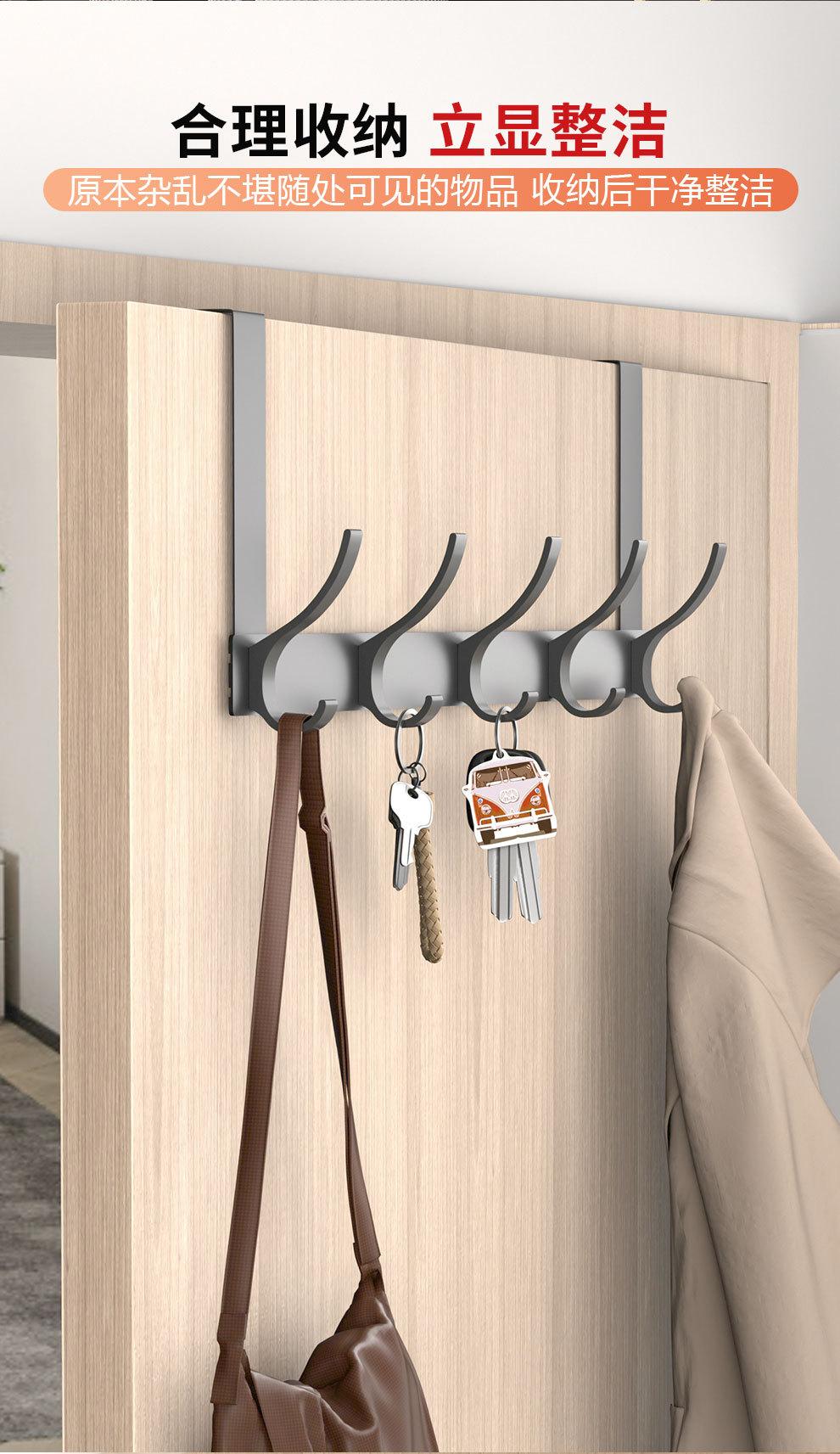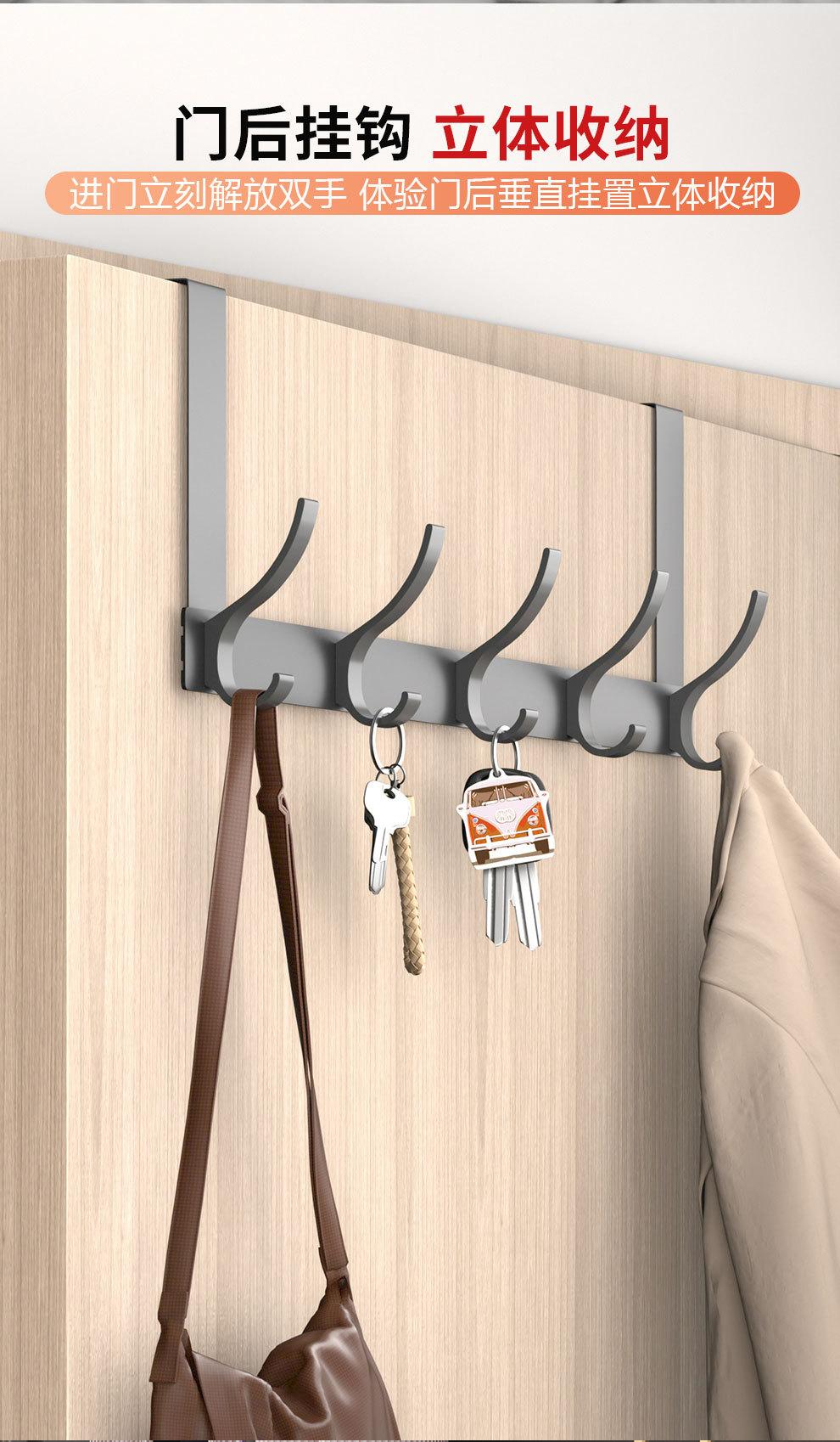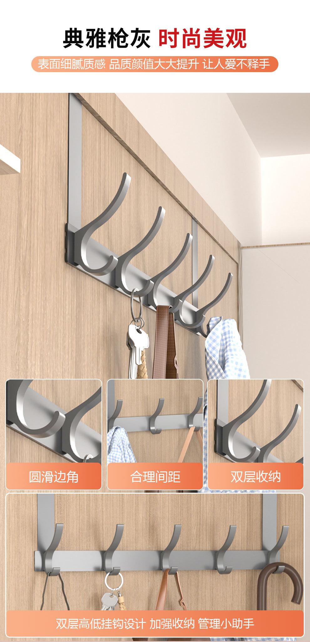 Gancho Sobre la Puerta al Por Mayor Aluminio Espacial Sin Perforaciones Gancho de Baño Almacenamiento de Dormitorio Colgador de Ropa Gancho de Pared para Ropa