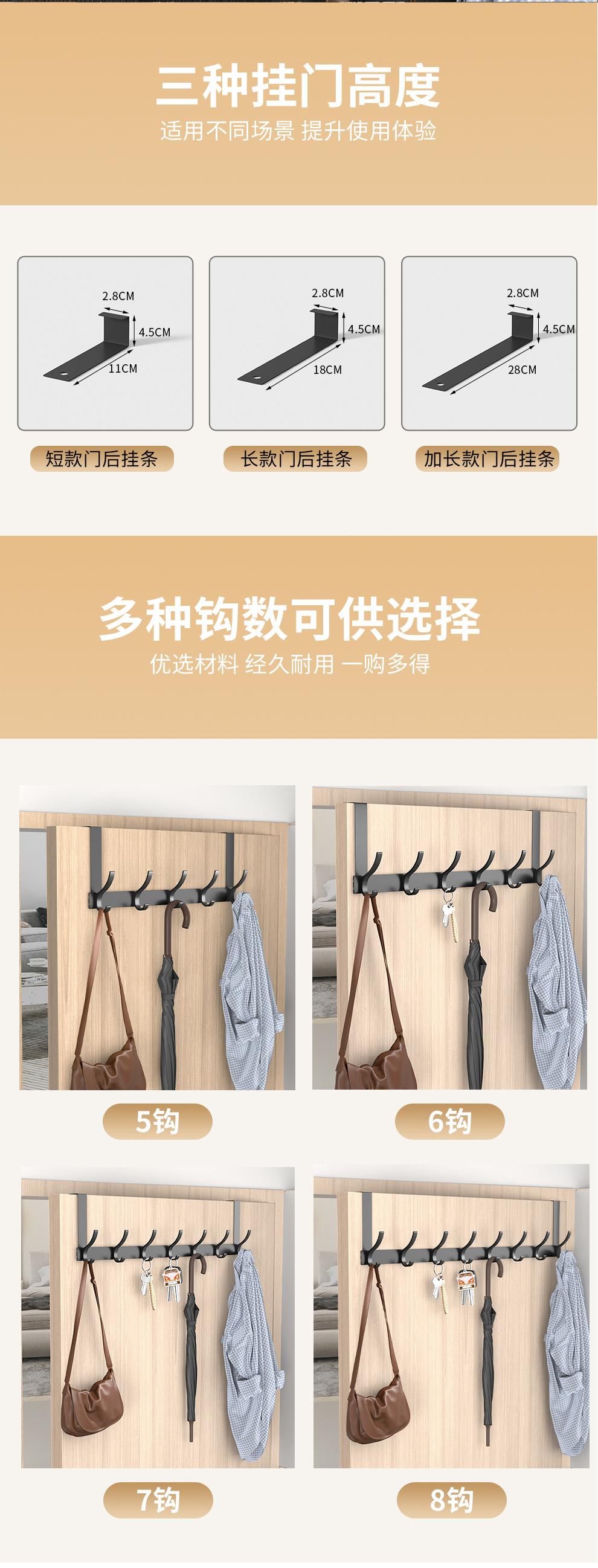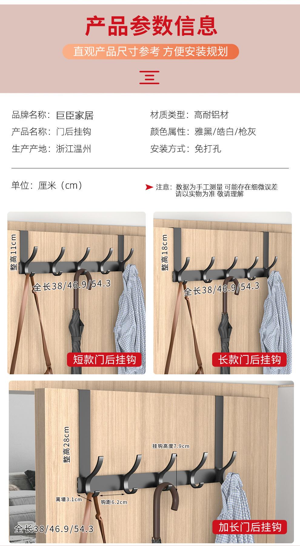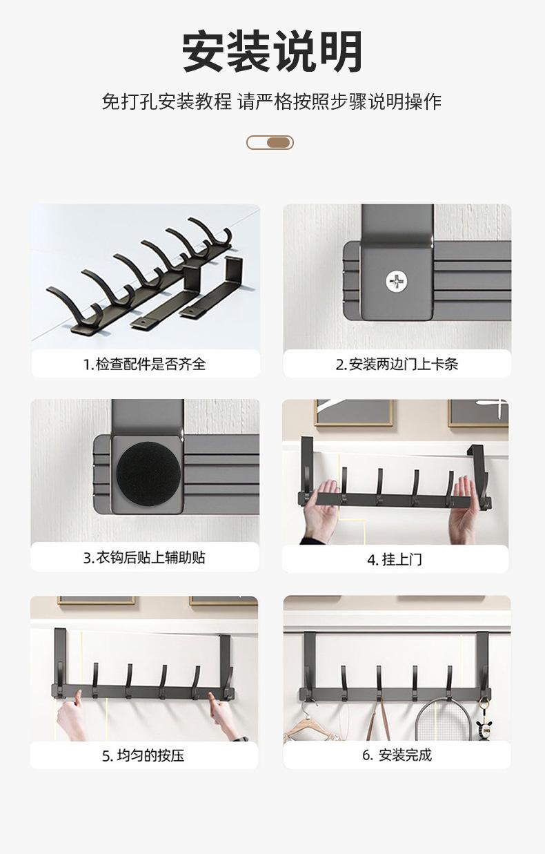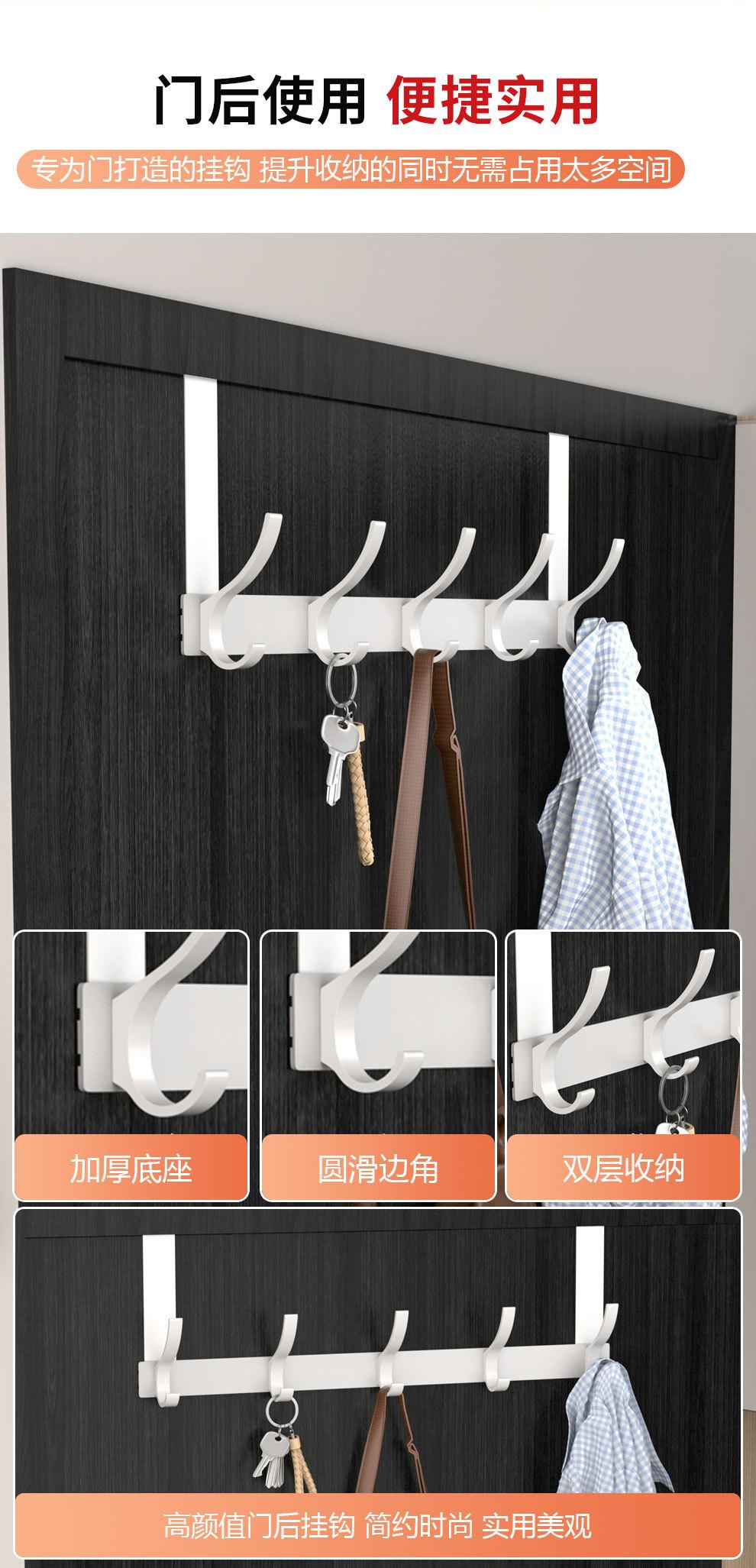 Gancho Sobre la Puerta al Por Mayor Aluminio Espacial Sin Perforaciones Gancho de Baño Almacenamiento de Dormitorio Colgador de Ropa Gancho de Pared para Ropa
