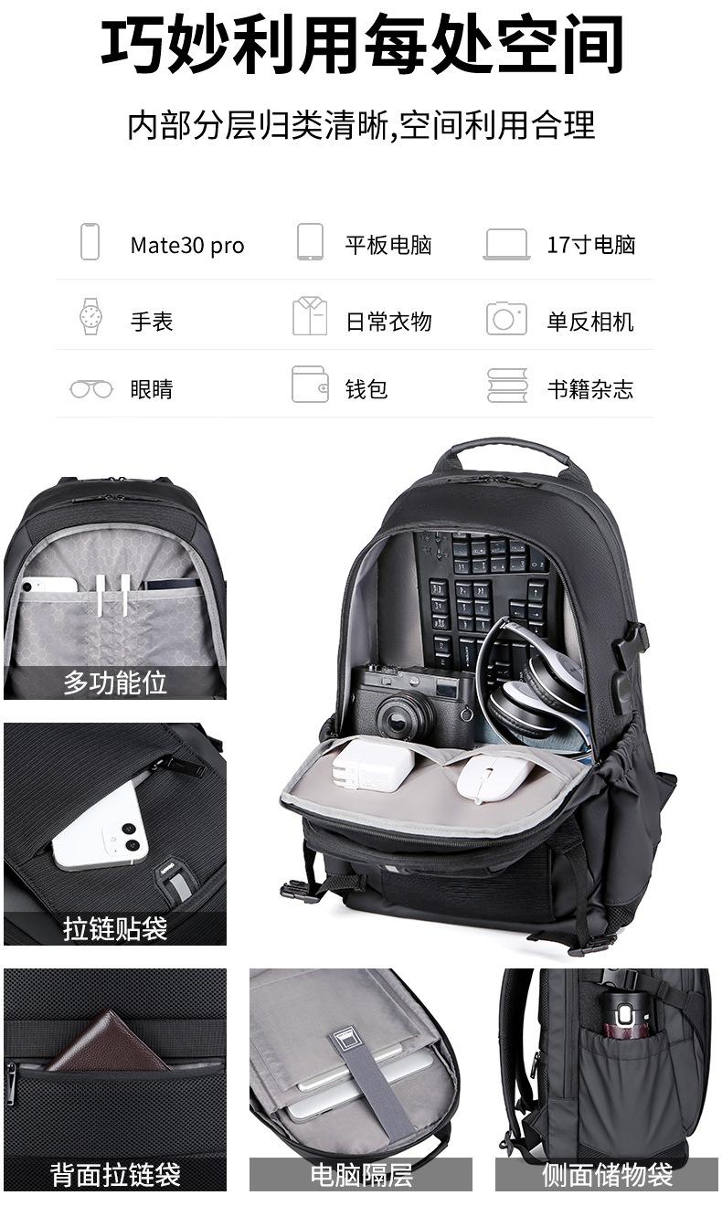 Mochila de Moda para Hombre Sentido de Alta Gama Viaje Ligero Mochila de Hombro para Mujer Mochila Escolar para Viaje de Negocios Impermeable Bolsa para Computadora