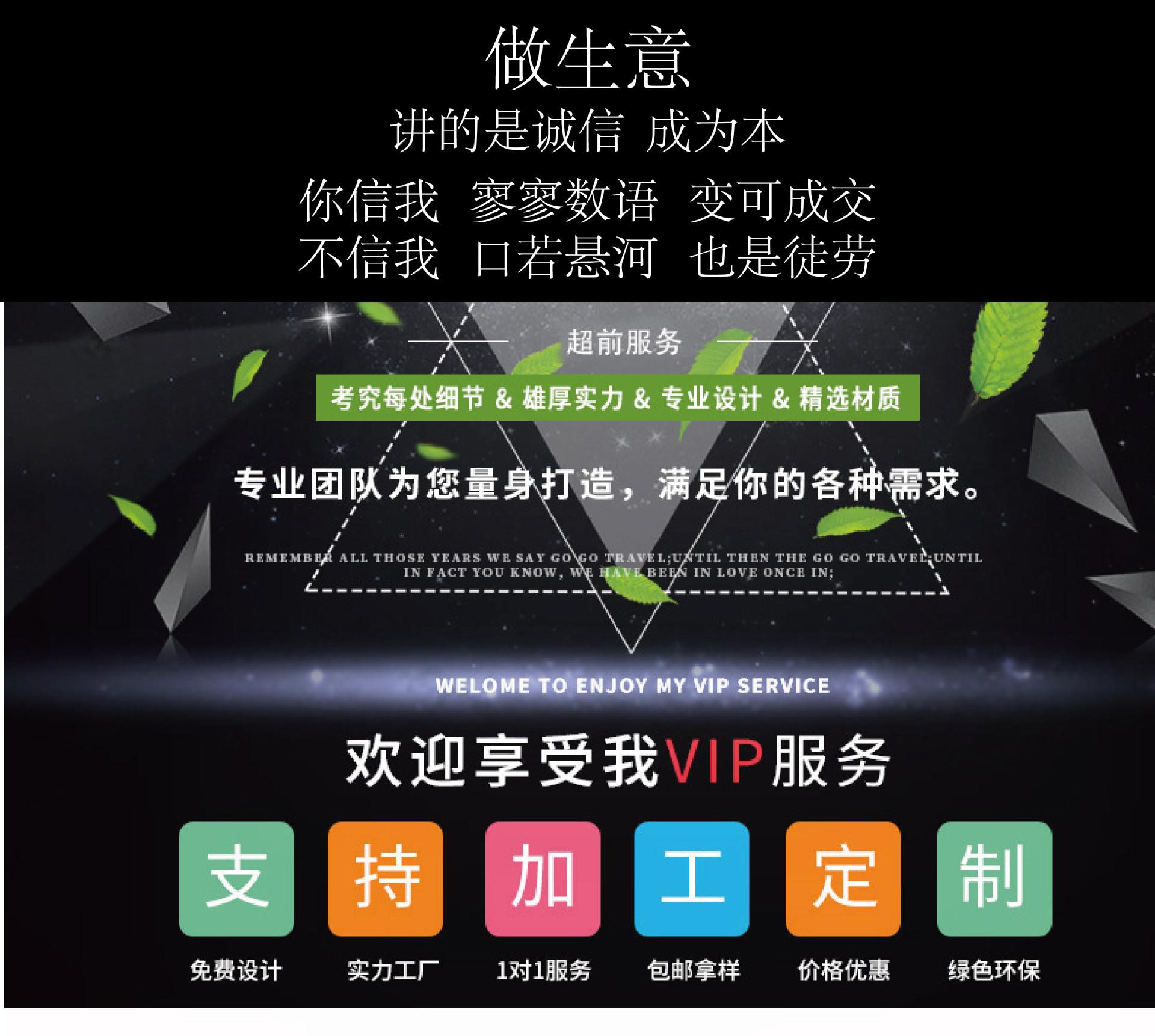 | Wenzhou Meishen Packaging Co., Ltd. se especializa en la producción y procesamiento de bolsas no tejidas, bolsas de lona, bolsas para prendas, bolsas de regalo, etc. Somos un fabricante de embalaje de tela que integra desarrollo, producción y ventas. También somos un proveedor de embalaje profesional que integra diseño, embalaje, procesamiento y otros servicios integrales. La filosofía empresarial de la empresa es tomar la calidad como el negocio principal, el capital como el enlace, el desarrollo científico como el portador, los nuevos proyectos como el punto de partida y el desarrollo innovador como la fuerza impulsora. Nos adherimos al propósito de "gestión honesta, calidad primero", nos adherimos a "gestión científica, producción meticulosa y lograr gradualmente la gestión de productos y la gestión de capital al mismo tiempo, para lograr una nueva situación y un nuevo objetivo estratégico de avance acelerado. Al mismo tiempo, Meishen también se situará en una nueva línea de salida, se centrará en la innovación de gestión, la investigación científica y la reforma tecnológica, promoverá la cultura corporativa con características de Meishen, hablará con calidad, precios asequibles y comparables, plazos de entrega más cortos y conceptos de servicio avanzados" para crear un equipo de aprendizaje y lograr el desarrollo sostenible de la empresa. "Servirle, desarrollarnos junto con usted y retribuir a los clientes nuevos y antiguos con sinceridad" es el principio de servicio de nuestra Meishen. Esperamos su patrocinio y crear un futuro mejor con nosotros. Amigos de todos los ámbitos de la vida son bienvenidos a visitar, guiar y negociar negocios. |
