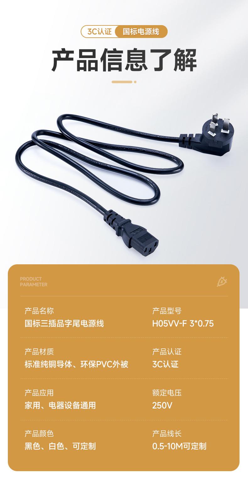 Cable de alimentación con enchufe de fábrica, cable de alimentación de tres enchufes, estándar nacional, para computadora, olla arrocera, cable de alimentación estándar nacional.