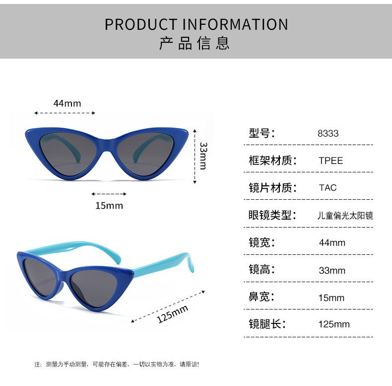Nuevas gafas de sol polarizadas de moda para niños, para exteriores, anti-ultravioleta, gafas de sol con forma de triángulo invertido y diseño de gato S8333