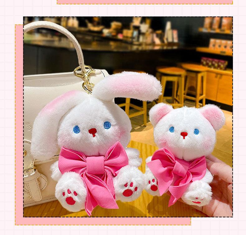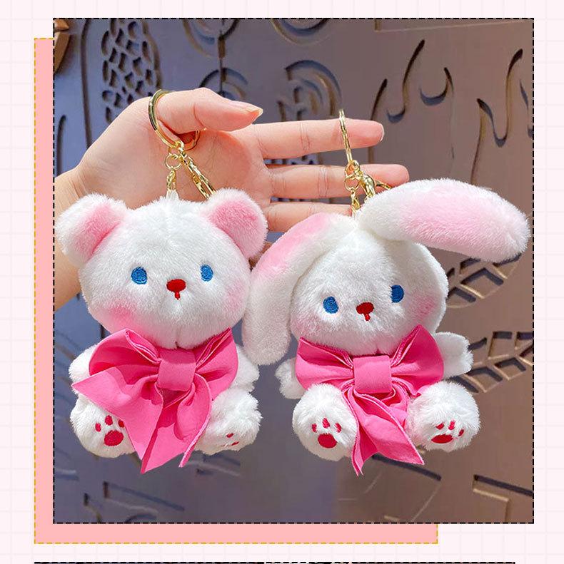Lindo llavero de oso de peluche de dibujos animados creativo pareja coche bolso conejo muñeca llavero colgante al por mayor