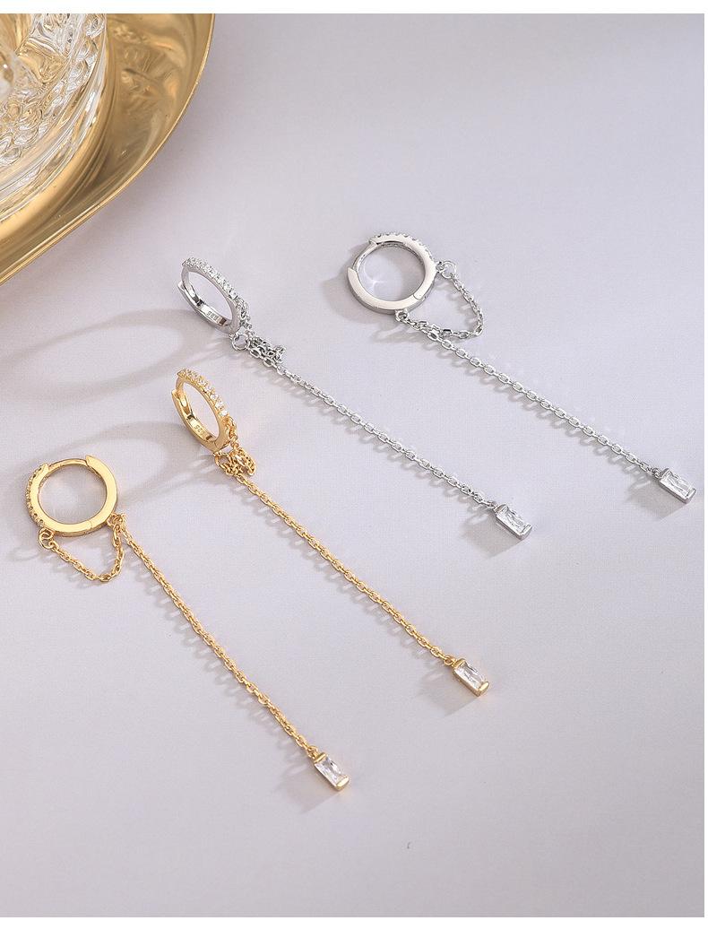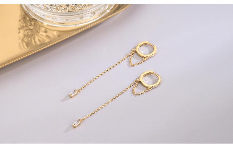 Compra Pendientes de borla de cadena de círculo de diamantes de viento japonés y coreano de plata esterlina S925, pendientes largos para rostro delgado y temperamento, una generación de cabello al por mayor en Joom.pro