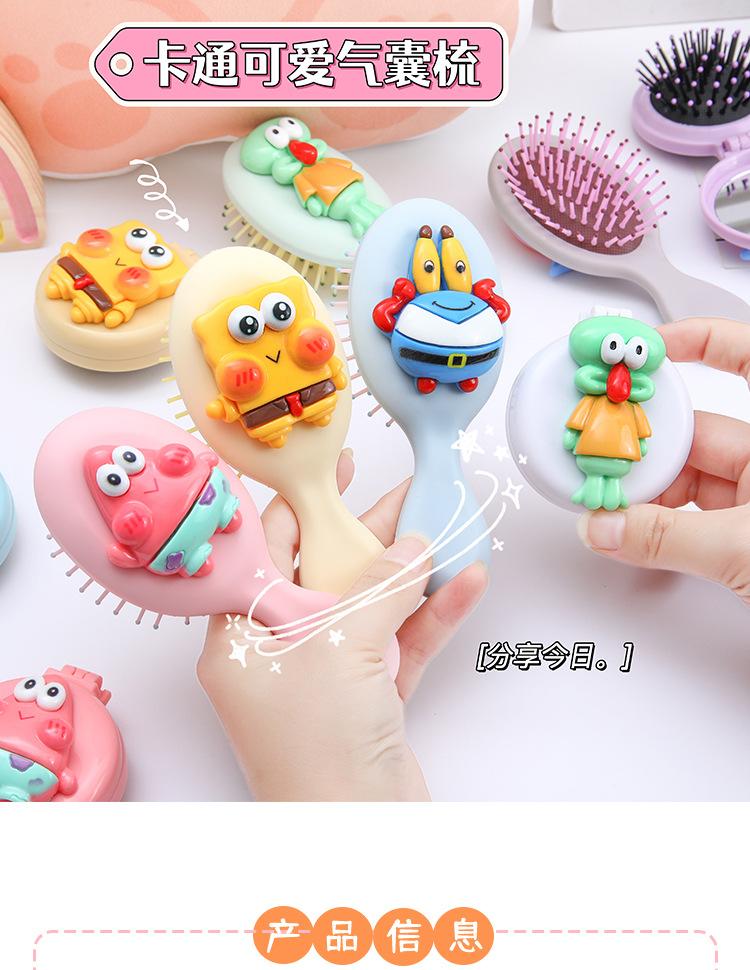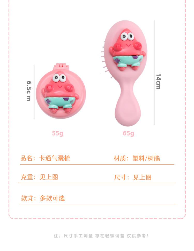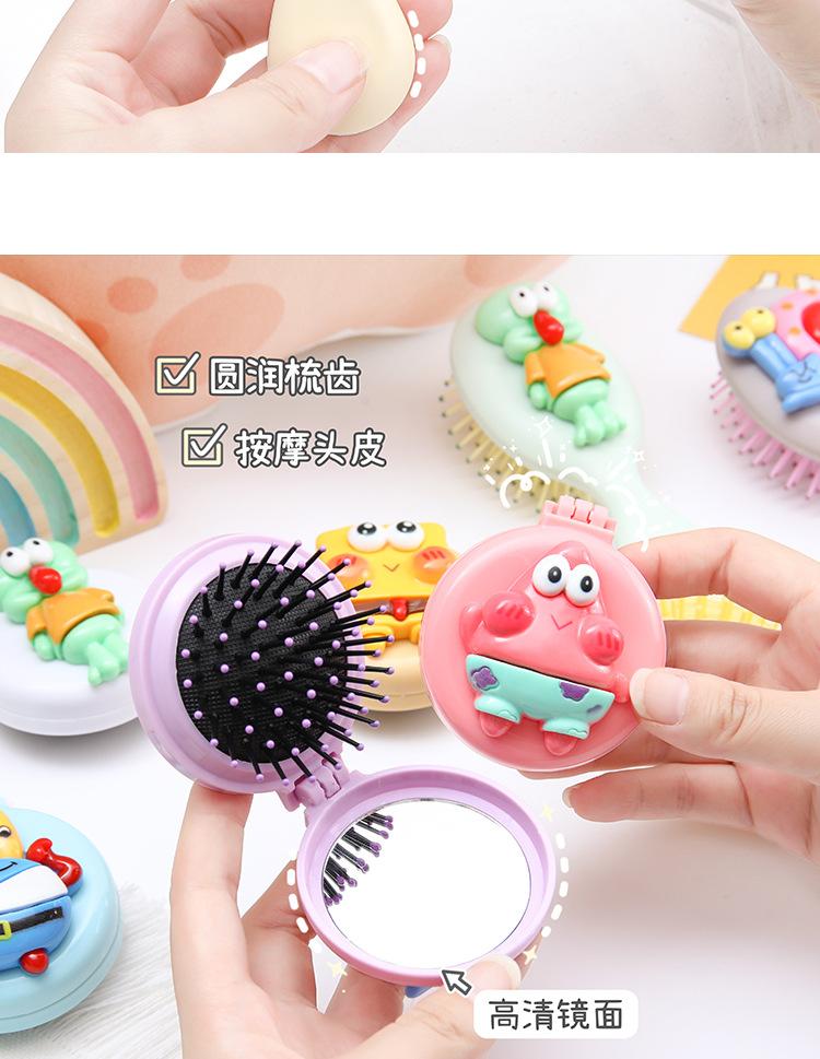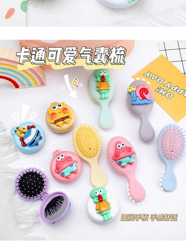 Peine de bolsa de aire, lindo peine de masaje plegable con forma de oso, peine con cojín de aire, mini peine portátil con espejo, una pieza, envío directo