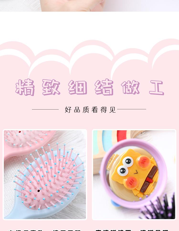 Peine de masaje de cabeza con cojín de aire de plástico portátil con diseño de corazón de niña, con espejo de maquillaje