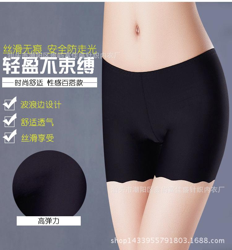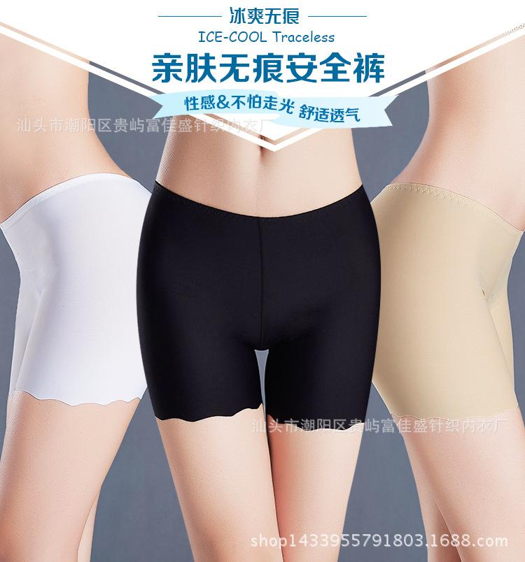 Venta al por mayor de ropa interior de tres puntos con volantes de seda de hielo, leggings de una pieza sin costuras para mujer, pantalones de seguridad antiexposición 189