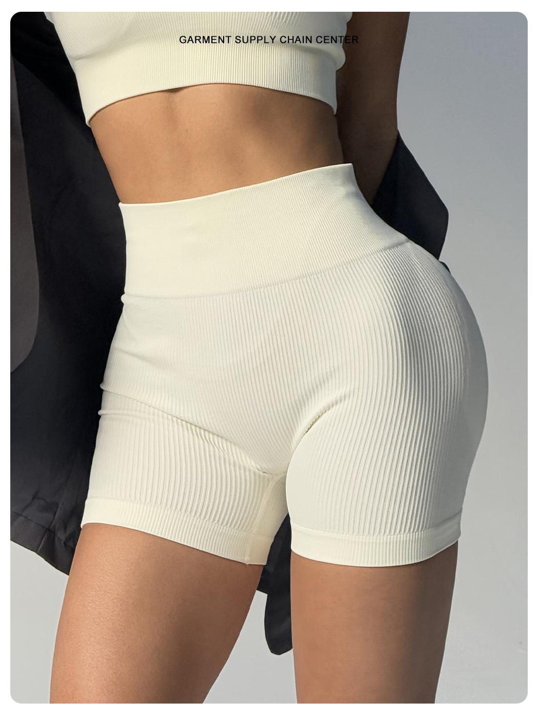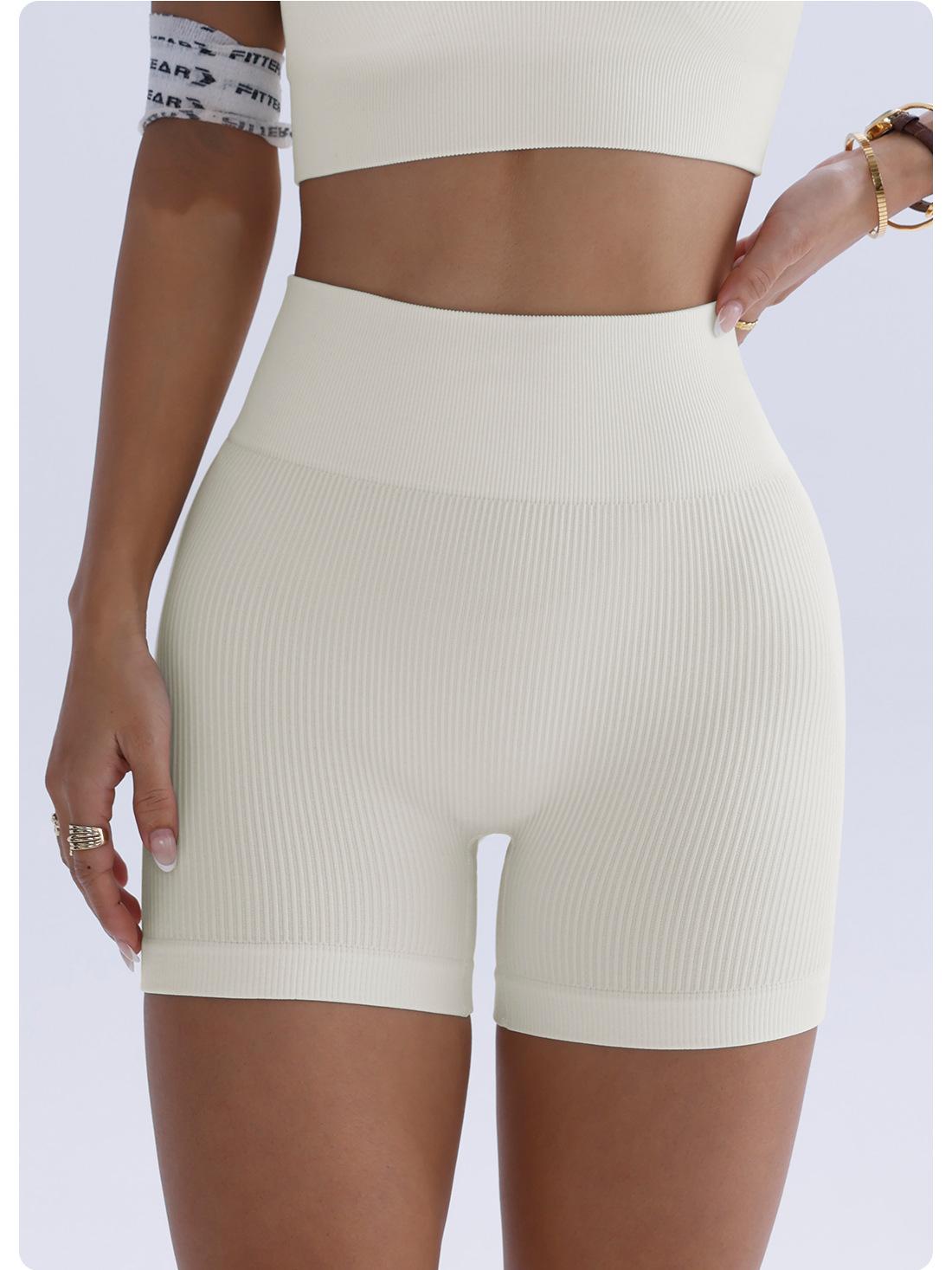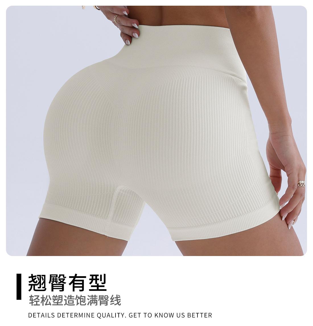 Pantalones de Yoga de Cintura Alta Sin Costuras Transfronterizos Europeos y Americanos Levanta Glúteos de Alta Elasticidad Secado Rápido Shorts Deportivos Glúteo Melocotón Shorts de Fitness Acanalados