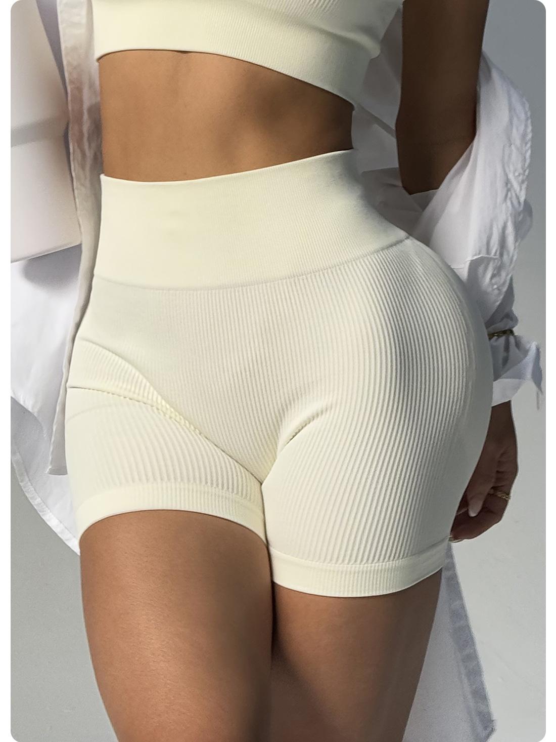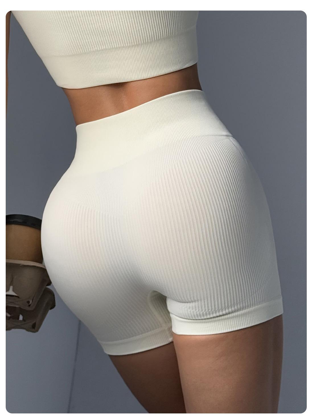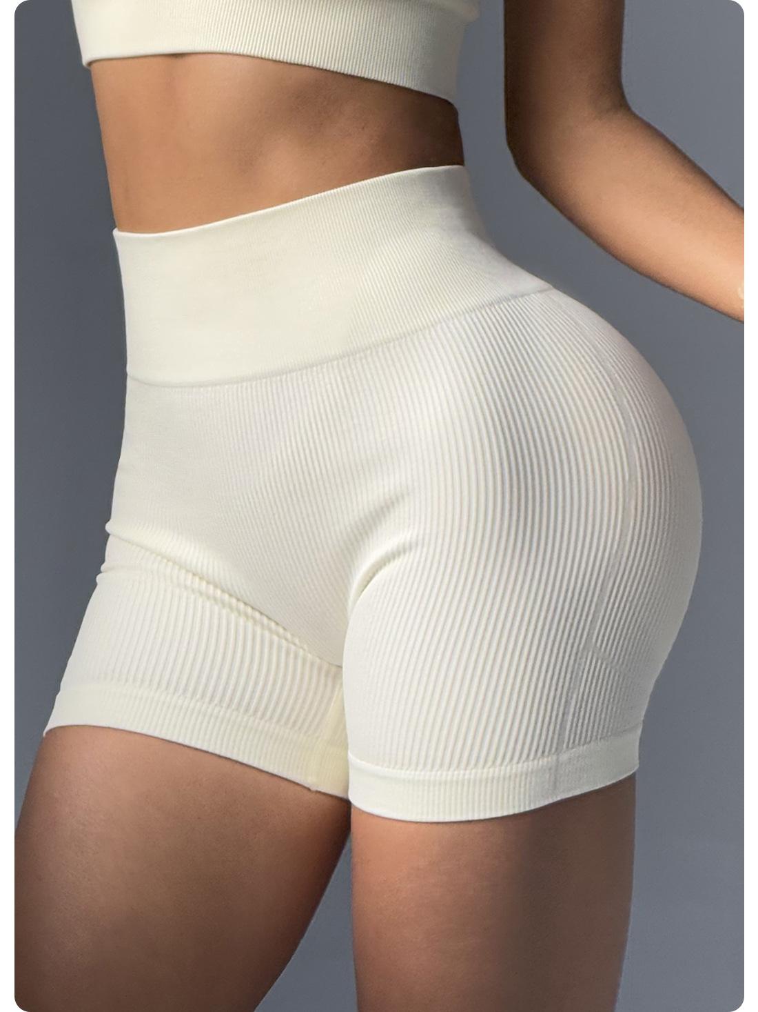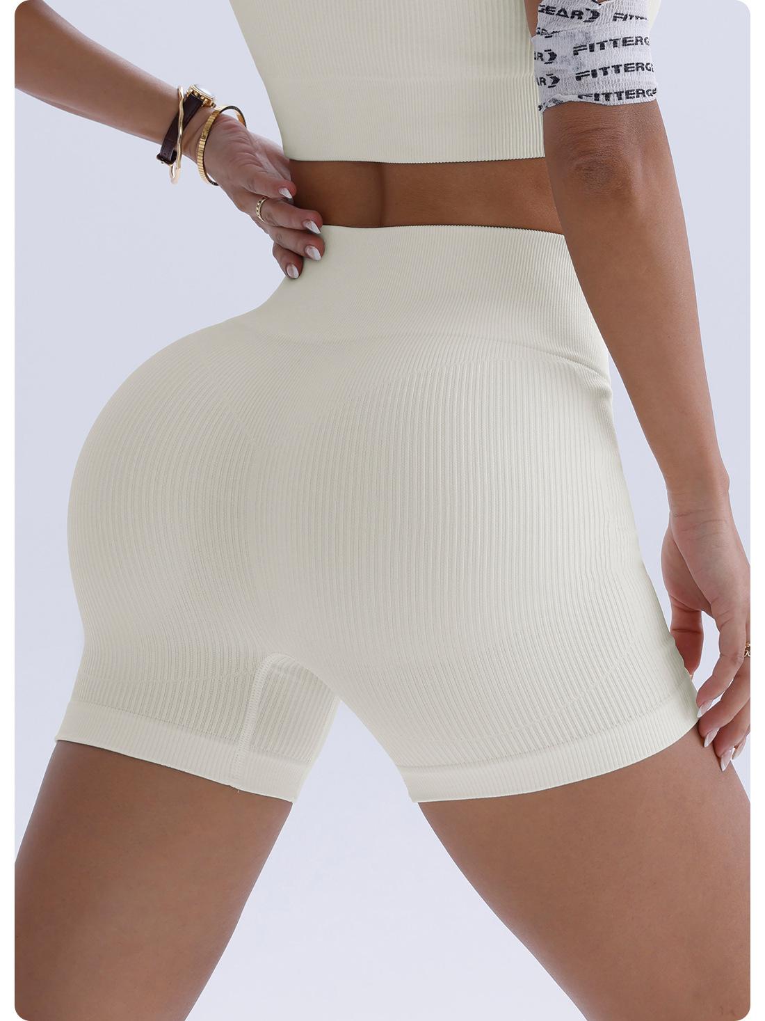 Pantalones de Yoga de Cintura Alta Sin Costuras Transfronterizos Europeos y Americanos Levanta Glúteos de Alta Elasticidad Secado Rápido Shorts Deportivos Glúteo Melocotón Shorts de Fitness Acanalados