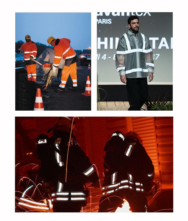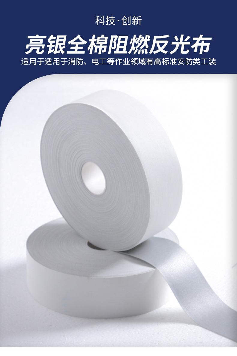 Tela reflectante ignífuga de algodón plateado brillante, tela ignífuga, tira reflectante de 5 cm, tela reflectante, venta directa de fábrica