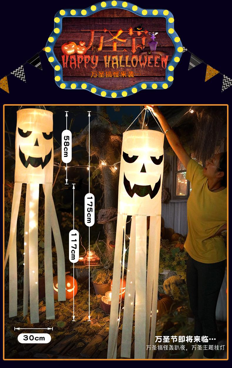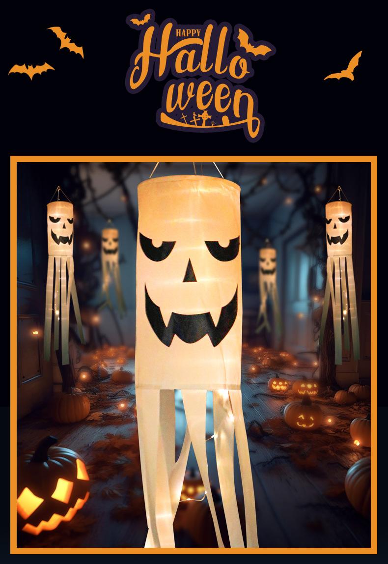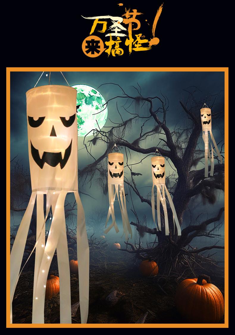 Halloween Fantasma Luminoso Fantasma Colgante Tubo de Viento Bandera Colgante Festival del Fantasma Atmósfera de Terror Decoración Colgante para Árbol al Aire Libre Diseño Transfronterizo