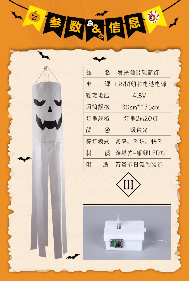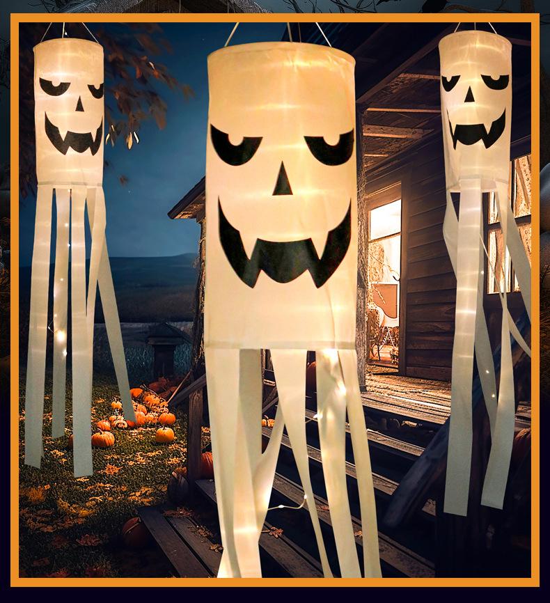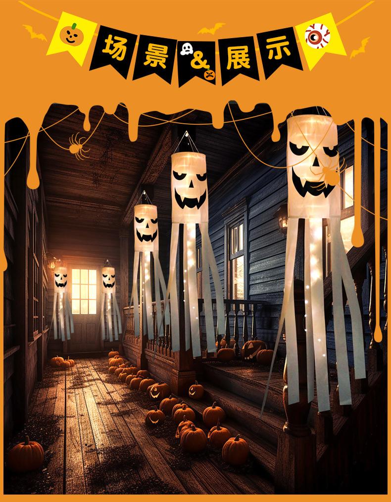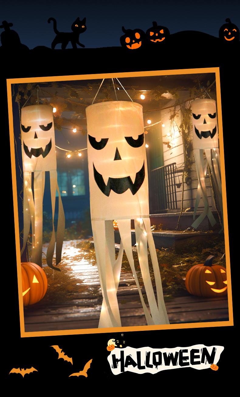 Halloween Fantasma Luminoso Fantasma Colgante Tubo de Viento Bandera Colgante Festival del Fantasma Atmósfera de Terror Decoración Colgante para Árbol al Aire Libre Diseño Transfronterizo