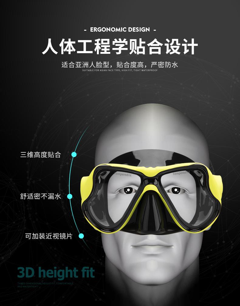 Set de Buceo Adulto Máscara de Buceo Snorkel Freediving Gafas de Buceo Lente de Máscara Ajuste Cómodo
