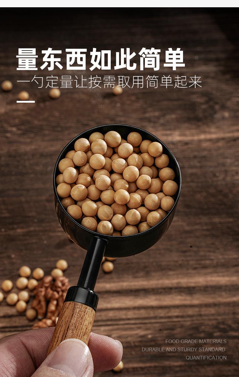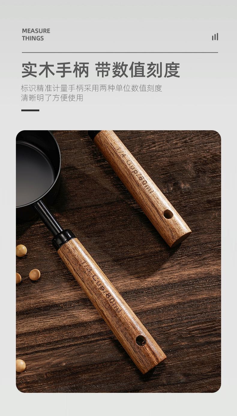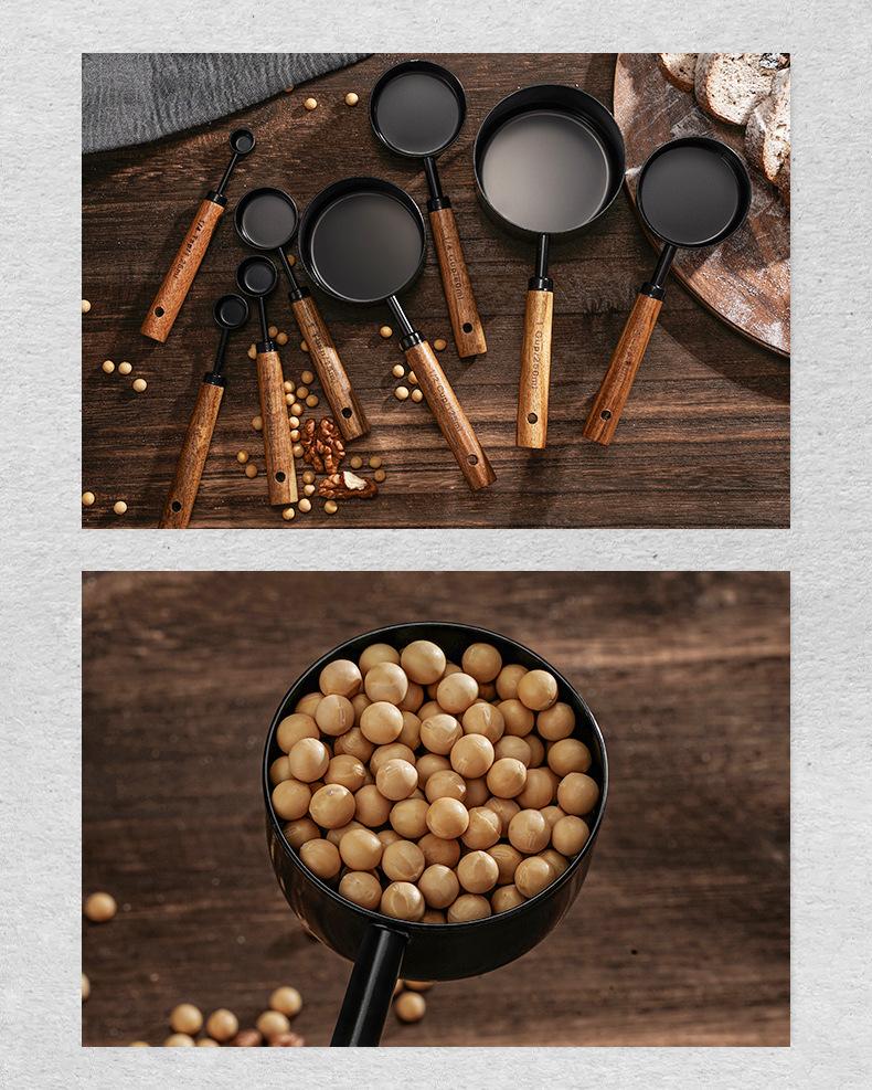 Acacia wood handle black measuring cup 4-piece set f102, Acacia wood handle black measuring spoon set of 4 f10...
