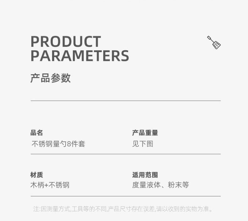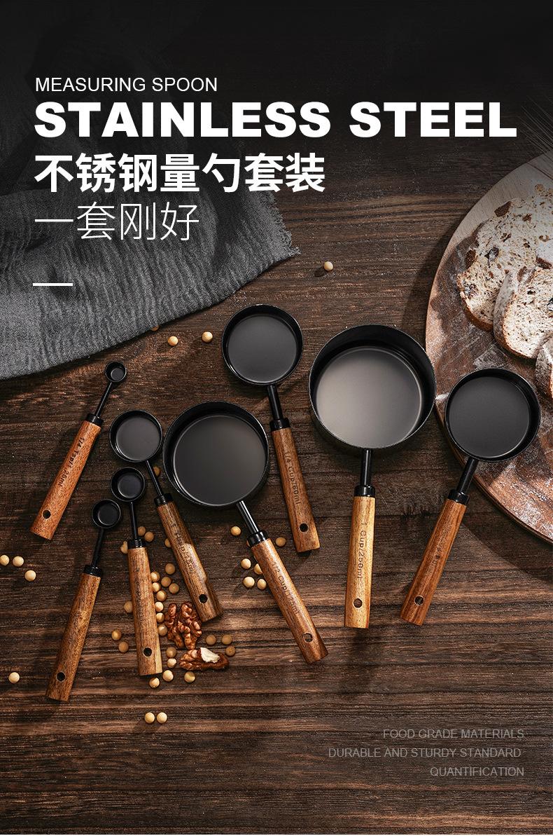 Acacia wood handle titanium measuring cup measuring spoon 8-piece set f102-f103