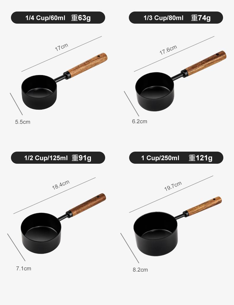 Acacia wood handle black measuring cup 4-piece set f102