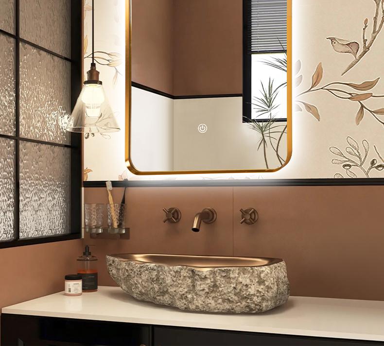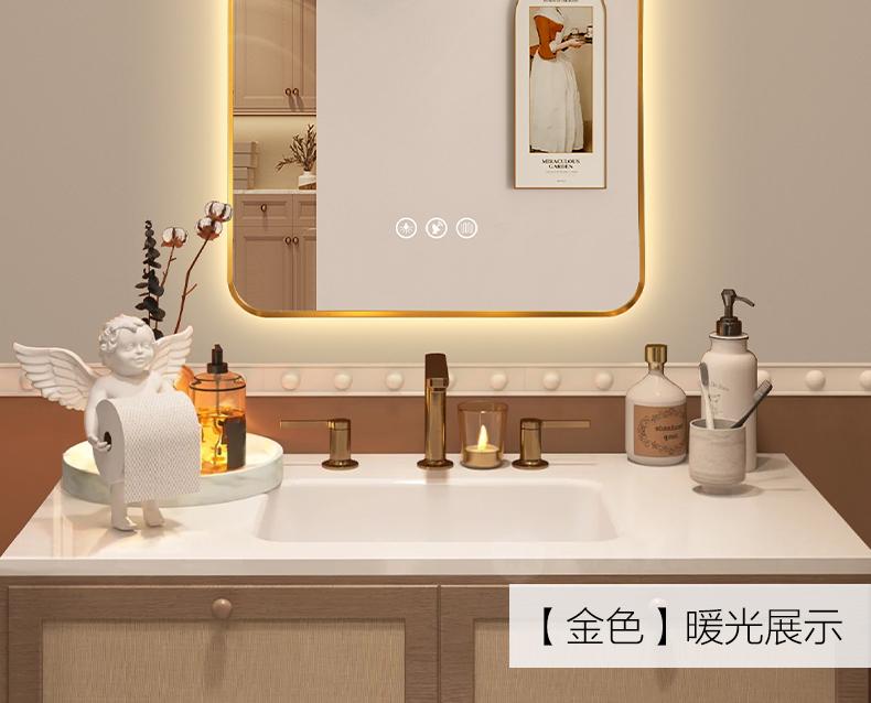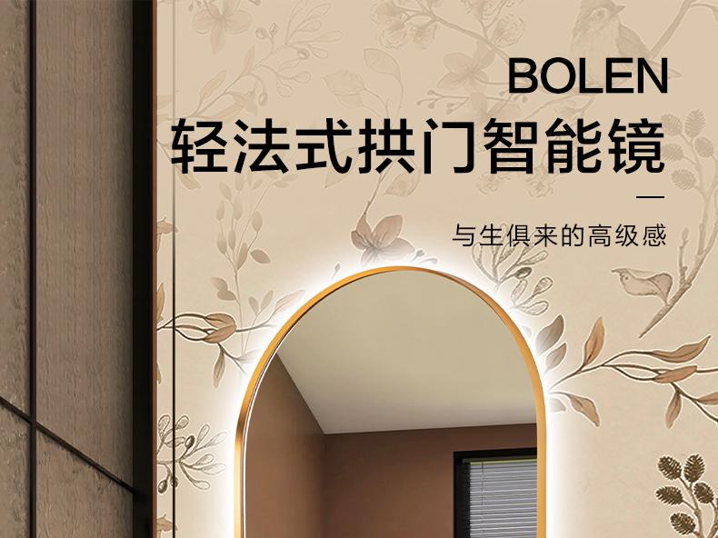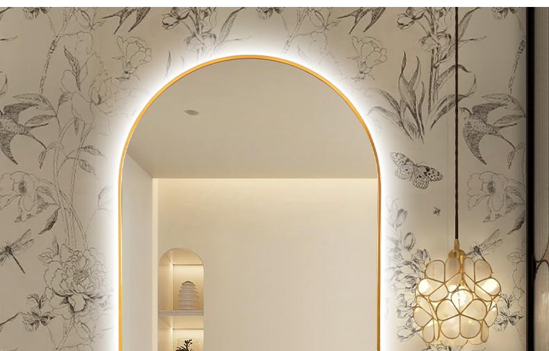 Bolen Espejo Inteligente con Marco de Aleación de Aluminio con Forma de Arco Francés, Retroiluminado, Espejo de Baño de Pared, Espejo con Luz Led para Tocador