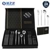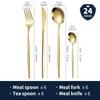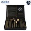 Juego de cubiertos de acero inoxidable dorado portugués transfronterizo de Amazon, cuchillo, tenedor y cuchara, 24 piezas, caja de regalo