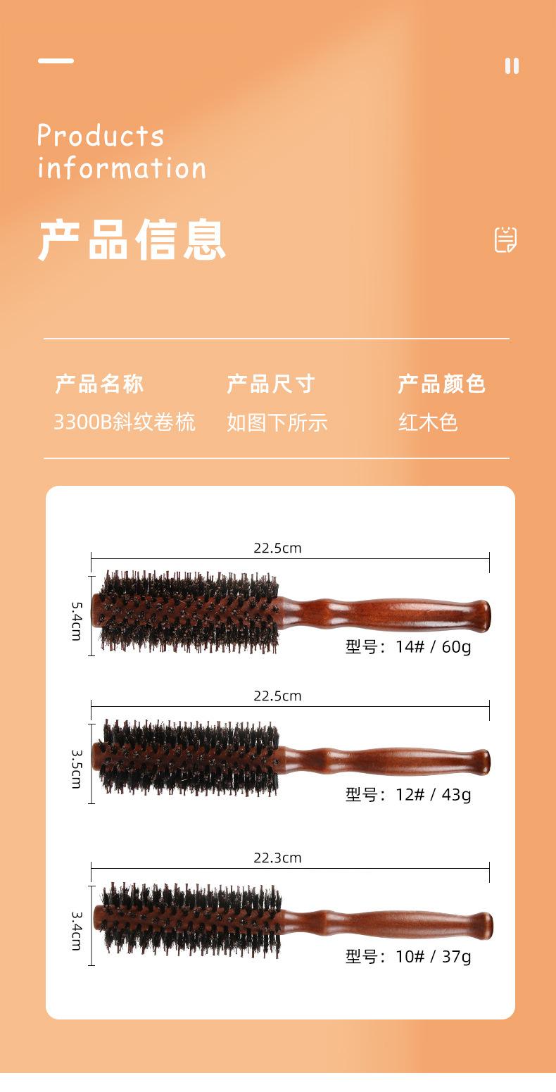 Peine para rizar de sarga de madera maciza Amazon Peine para rizar de cerdas de jabalí Peine para peinar ondas grandes Peine redondo Peine de rodillo Peine de rodillo antiestático