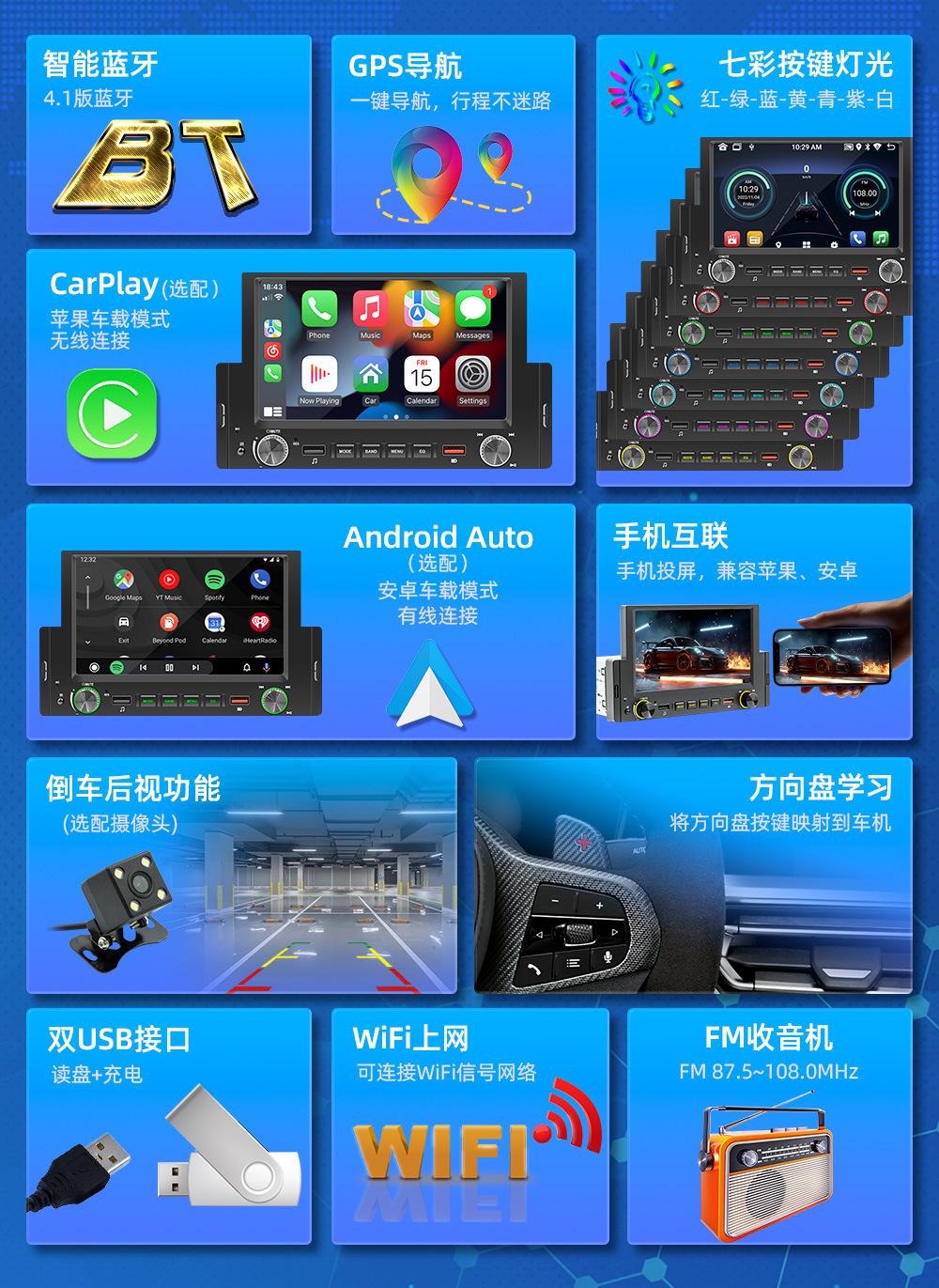 Navegación GPS para Coche Android de 6.2 pulgadas Radio para Coche con Tarjeta Reproductor MP5 Bluetooth Selección Inversa Carplay