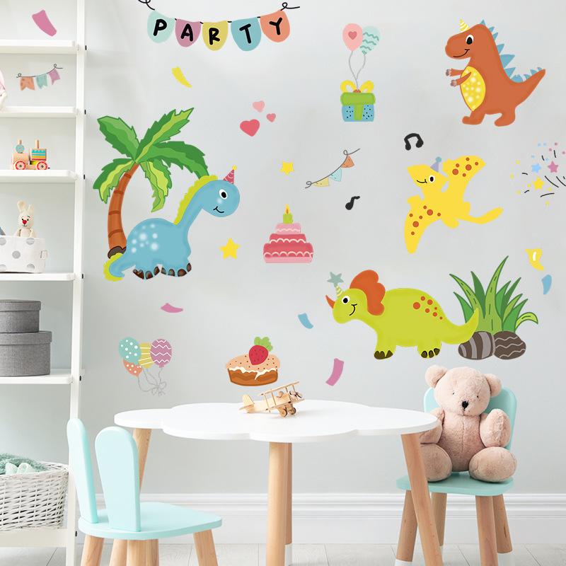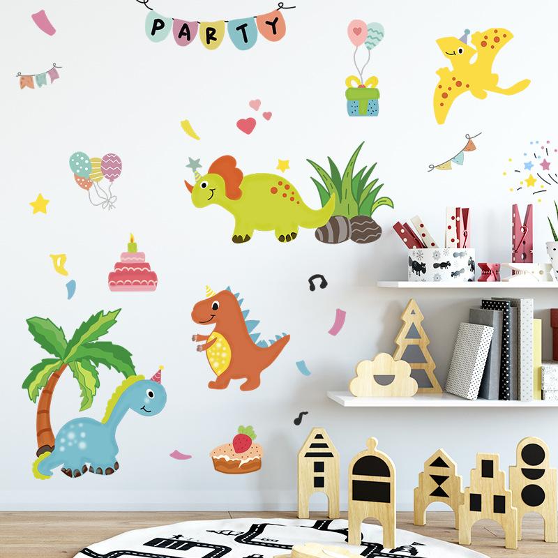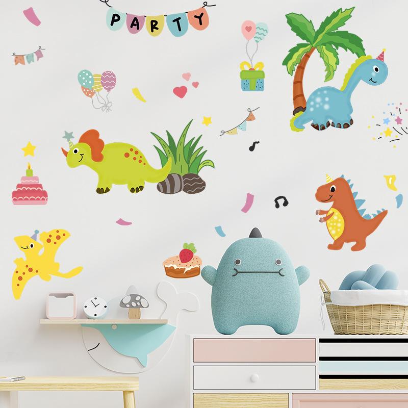 Nuevo FX-E181, lindo dinosaurio de dibujos animados para habitación de niños, guardería, decoración de pared del hogar, pegatinas de pared autoadhesivas