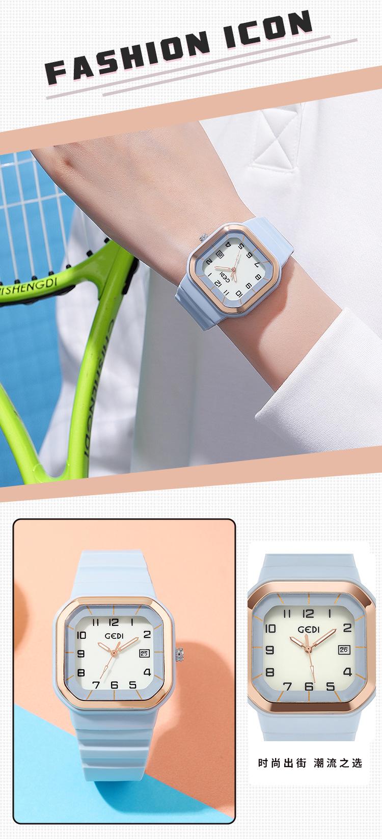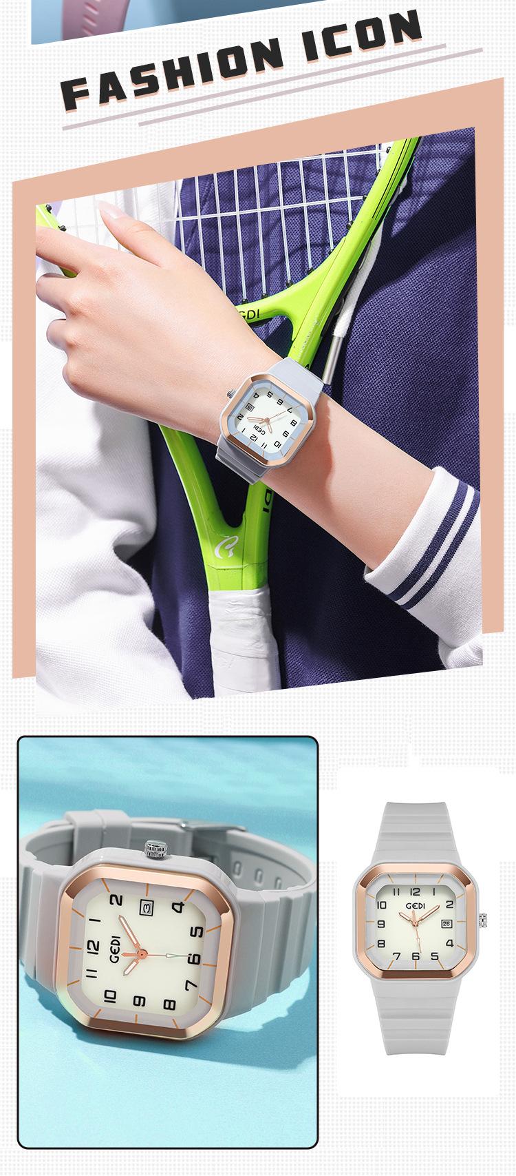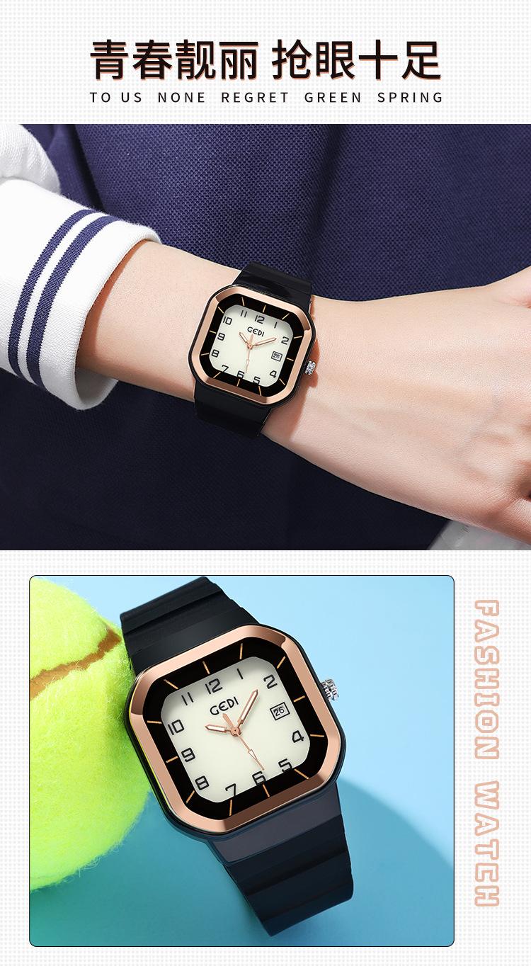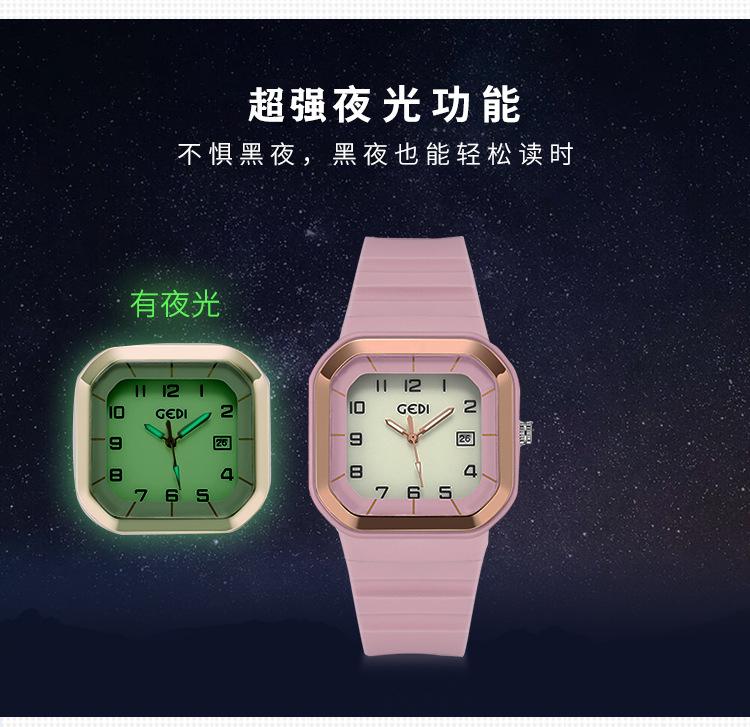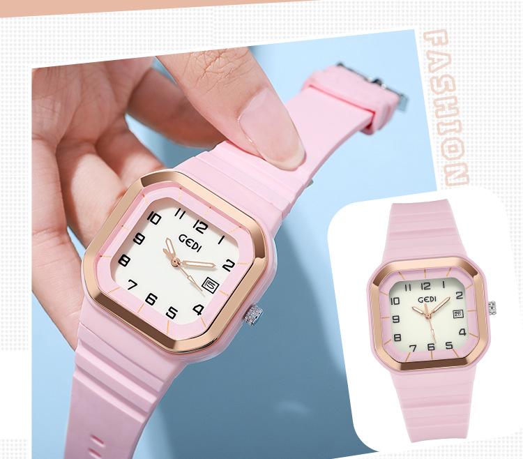Reloj deportivo para estudiantes Goldie, reloj cuadrado con correa luminosa, calendario, cinta de silicona, reloj de cuarzo resistente al agua.