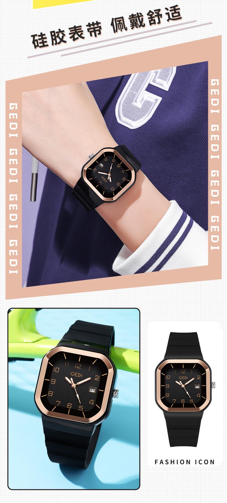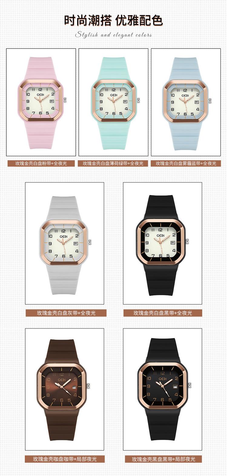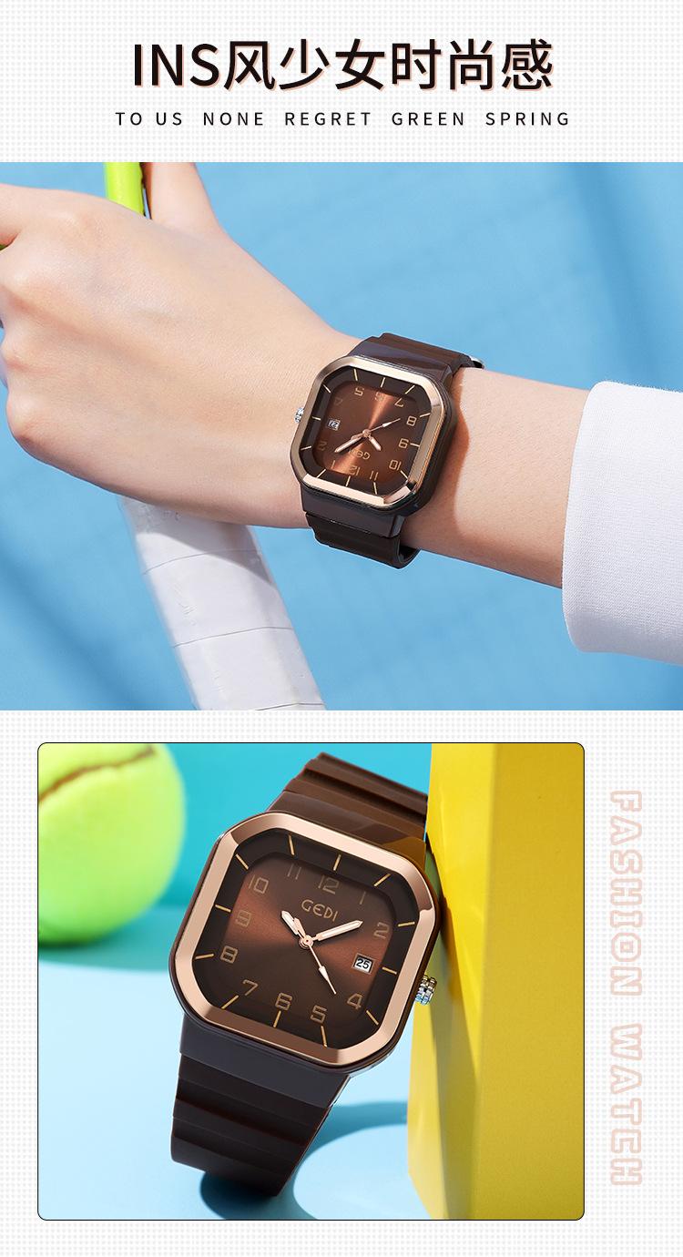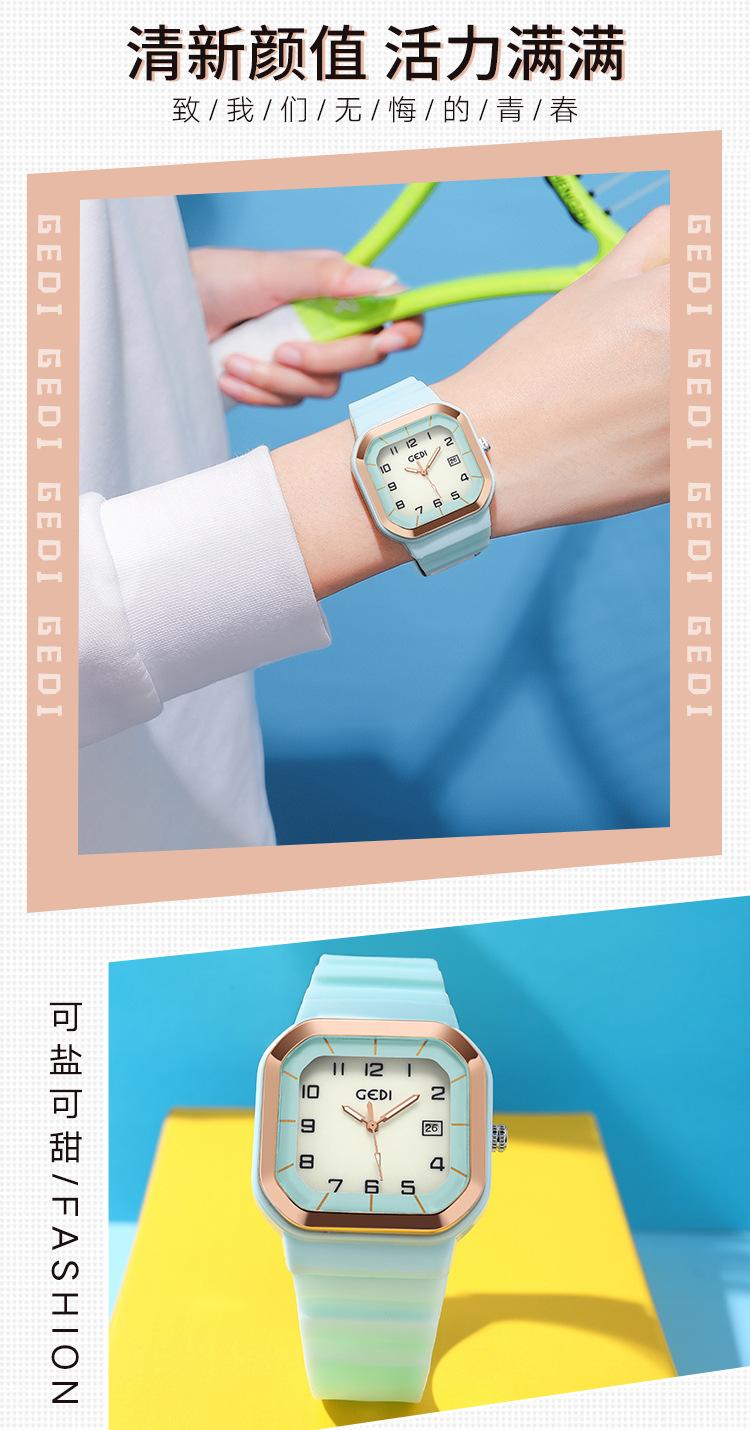 Reloj deportivo para estudiantes Goldie, reloj cuadrado con correa luminosa, calendario, cinta de silicona, reloj de cuarzo resistente al agua.