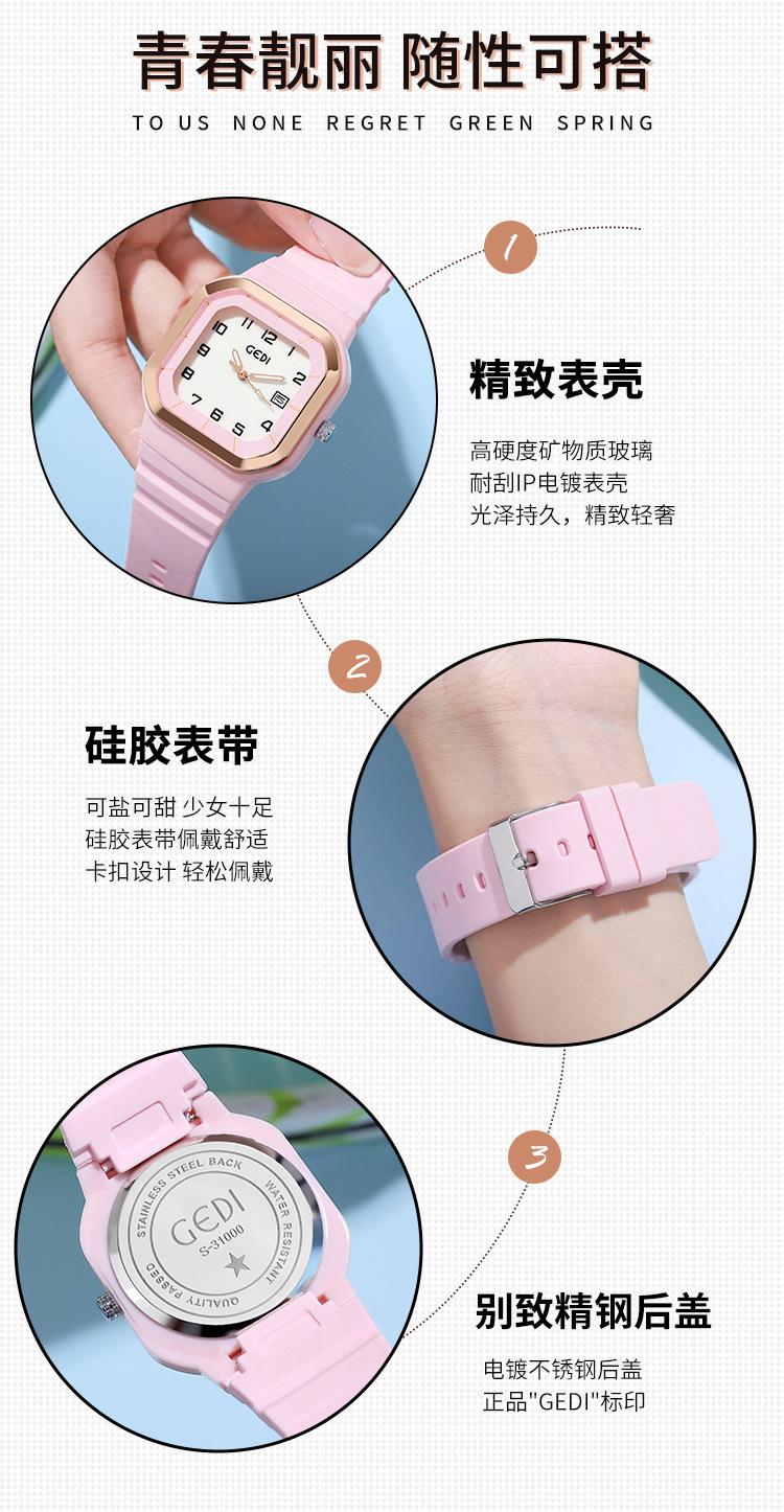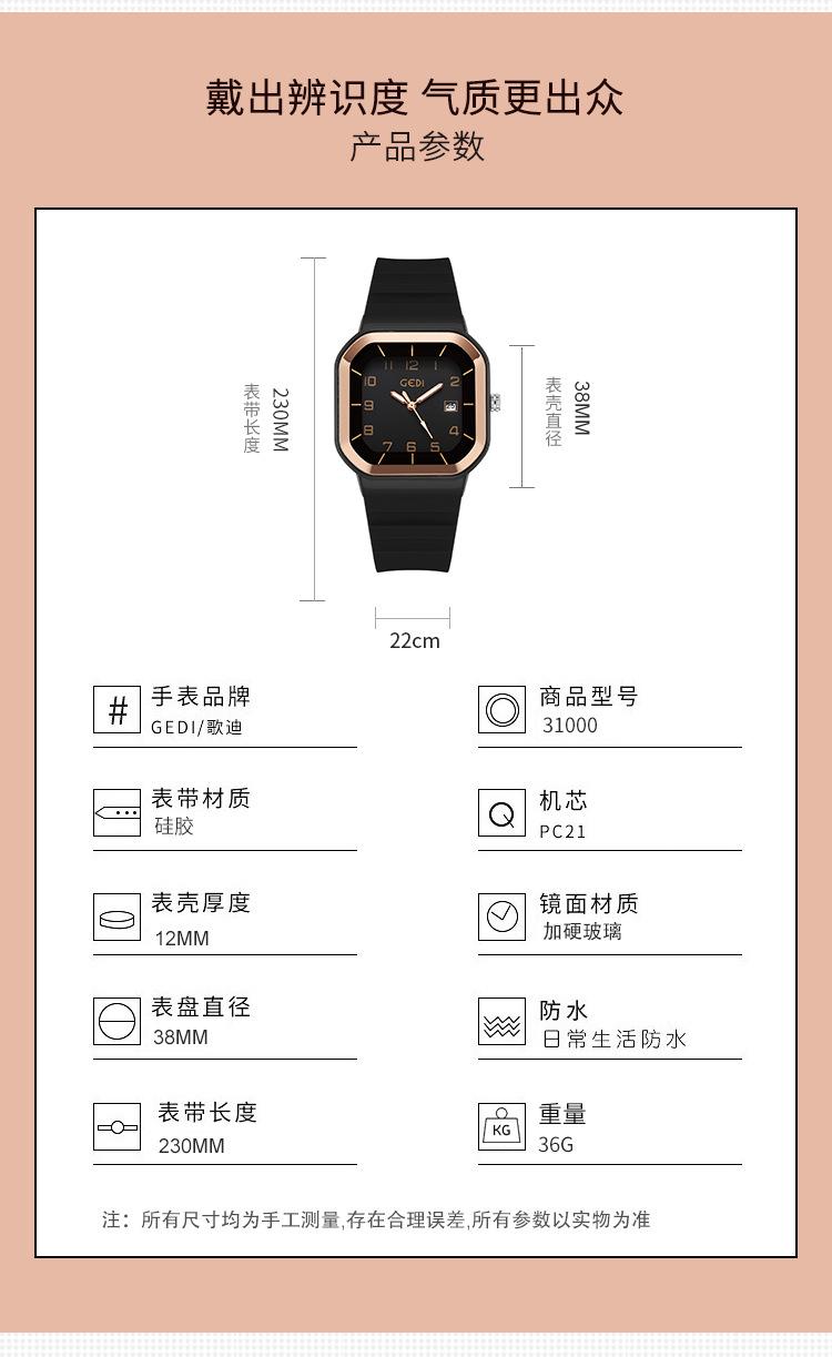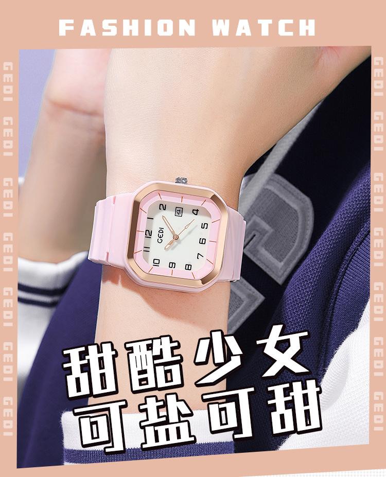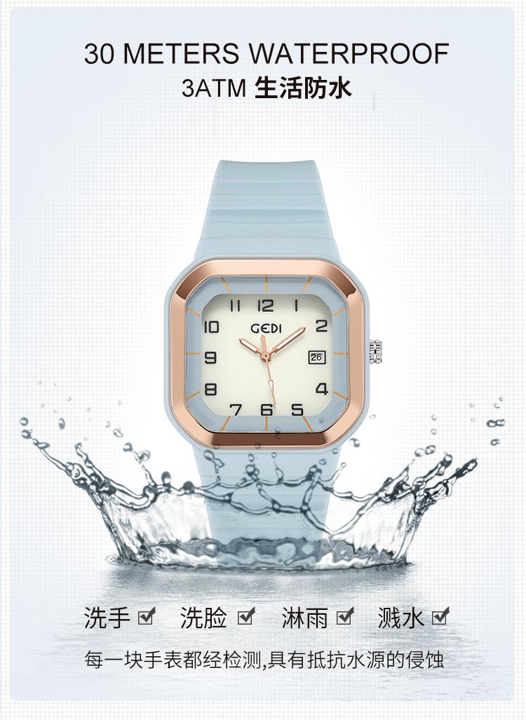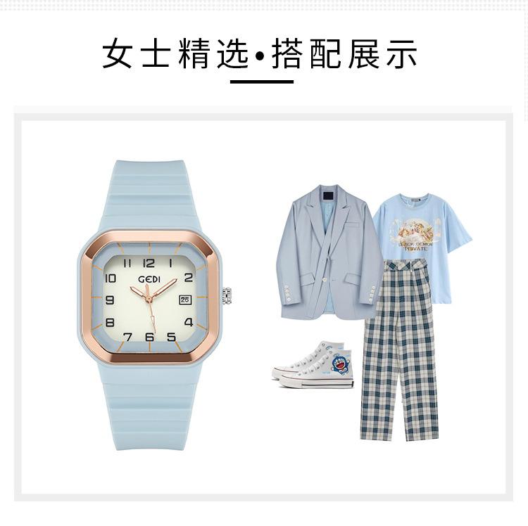 Reloj deportivo para estudiantes Goldie, reloj cuadrado con correa luminosa, calendario, cinta de silicona, reloj de cuarzo resistente al agua.