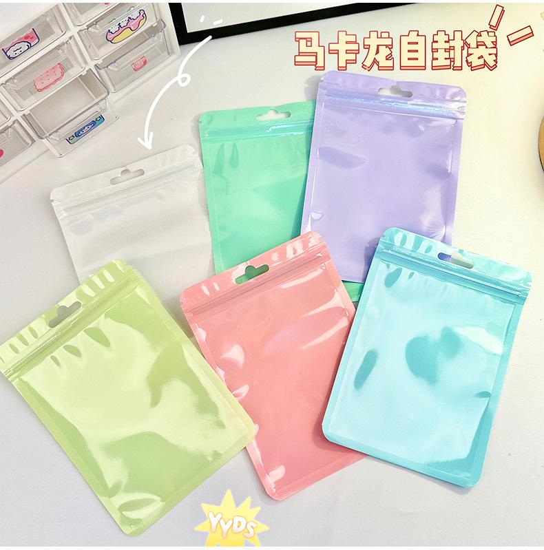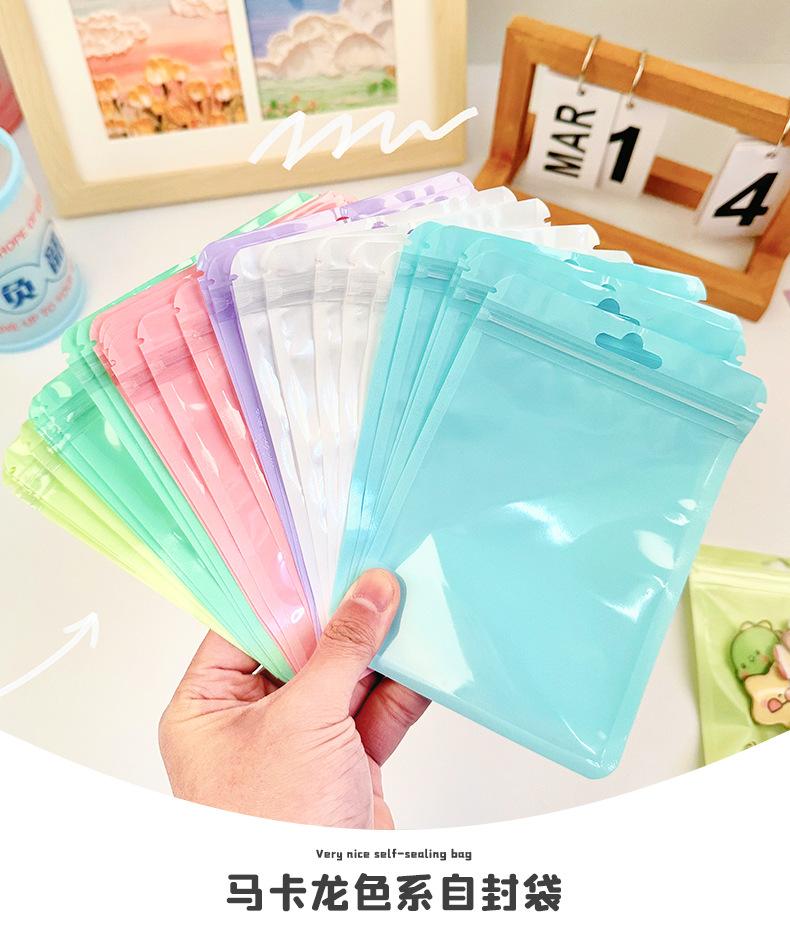Bolsa autosellable para macarrones, bolsa de embalaje transparente de color grueso, tarjetero, pequeña bolsa sellada a prueba de polvo para guardar joyas, venta al por mayor