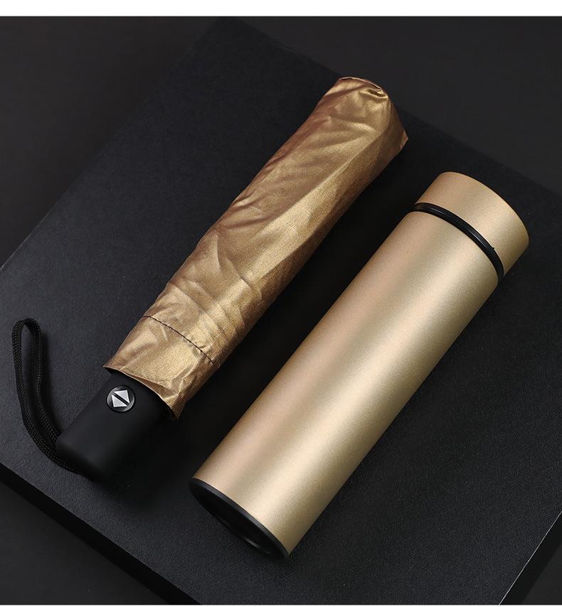 Metal Smart Cup-Gold + Gold Automatic Umbrella