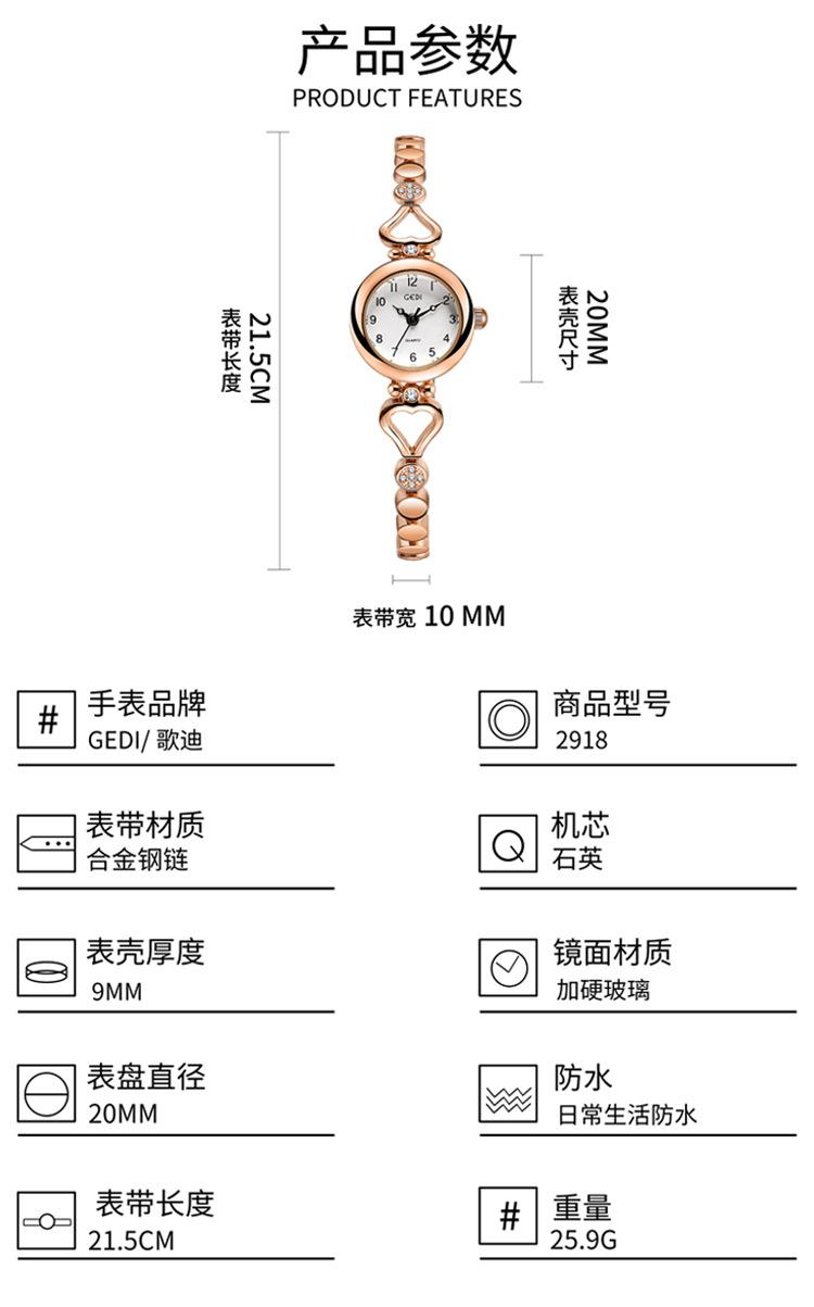 Reloj Goldie de aleación exquisita para mujer, pequeño, de cuarzo, de alta gama, resistente al agua, ligero y de lujo.