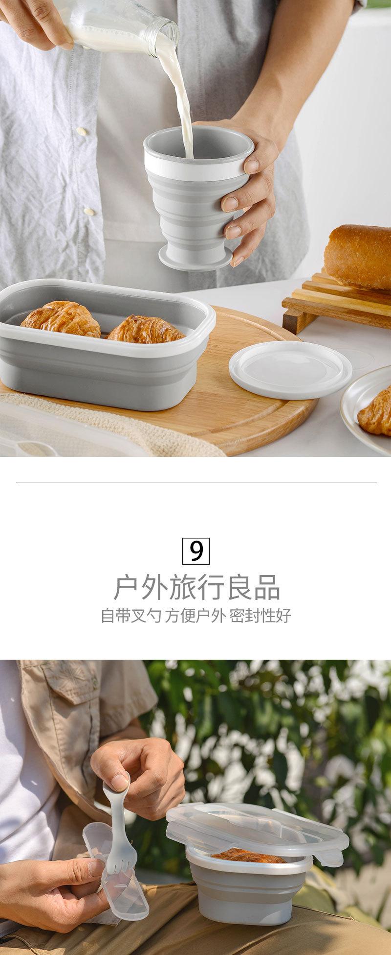 Lonchera de silicona plegable portátil, juego de dos piezas, taza de agua, lonchera de silicona telescópica de fácil almacenamiento