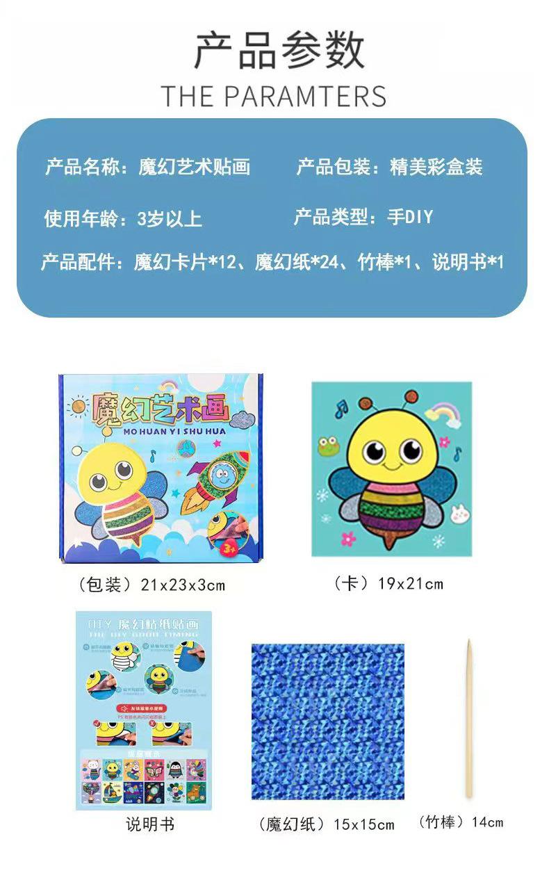 Accesorios del producto: Cartas mágicas*12, papel mágico*24, varita de bambú*1, manual de instrucciones*1