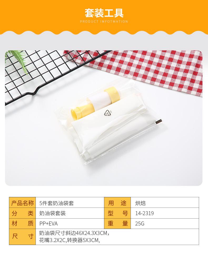 Cream bag size: 28*14.5*3.5cm, converter 4x3cm, flower mouth 3x2.1cm, 5.1x2.1cm